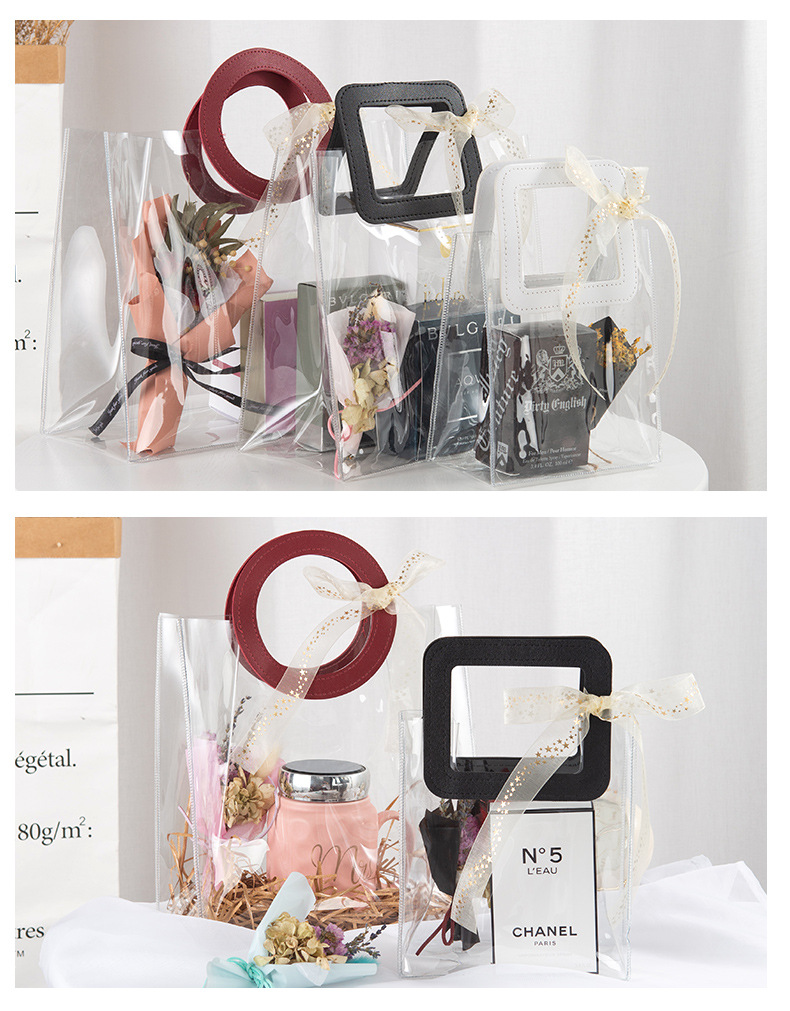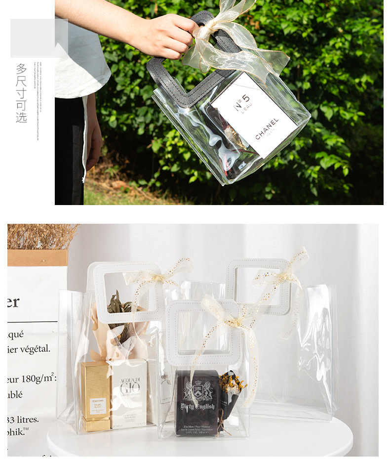 한 살짜리 선물 투명 핸드백 캔디 토트 백 결혼 선물 가방 PVC 플라스틱 휴대용 포장 가방스토어 가기