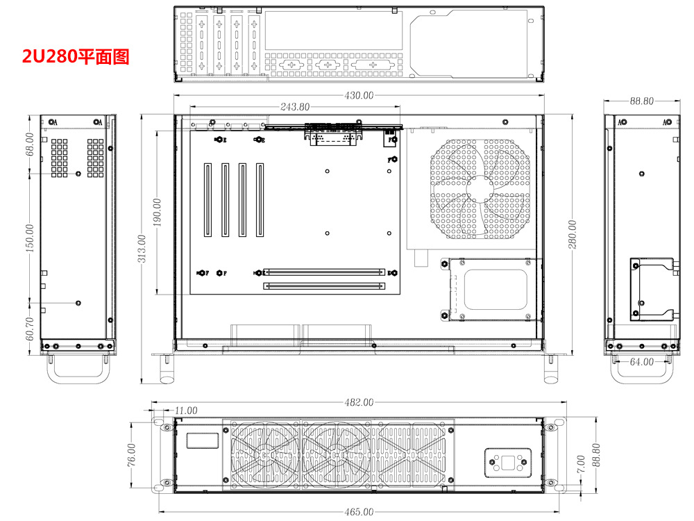 추천 제조업체 재고 2U 섀시 산업 제어 서버 엔터프라이즈 초박형 280mm 미니 컴퓨터 두꺼운 스틸 매트 블랙