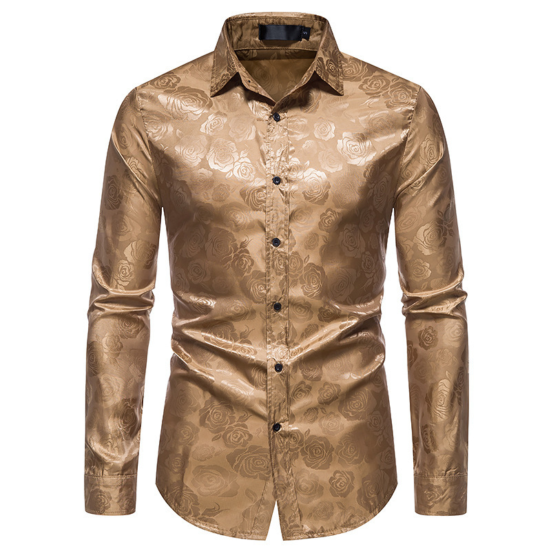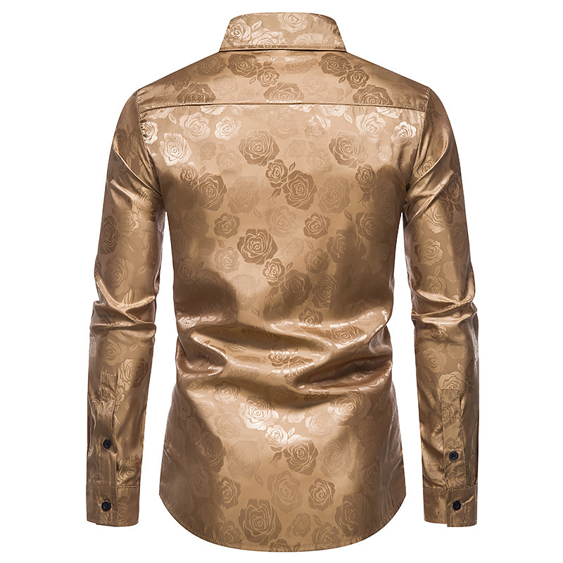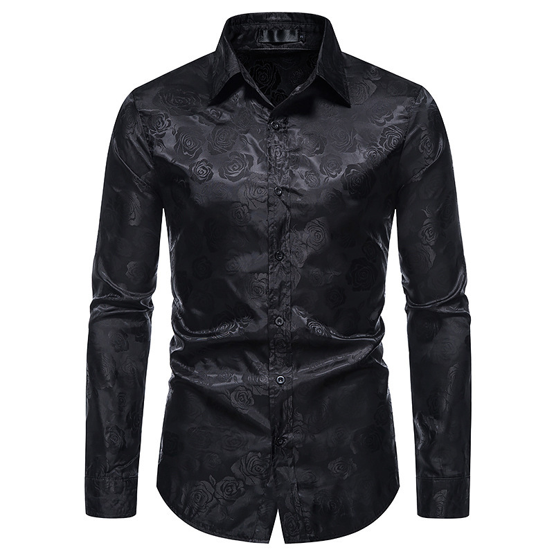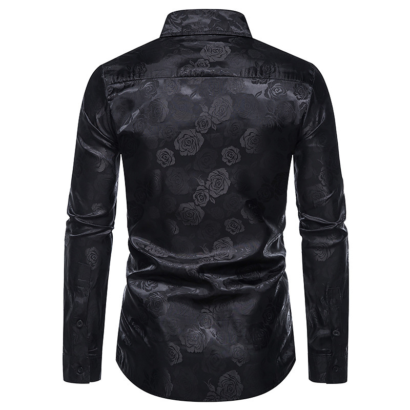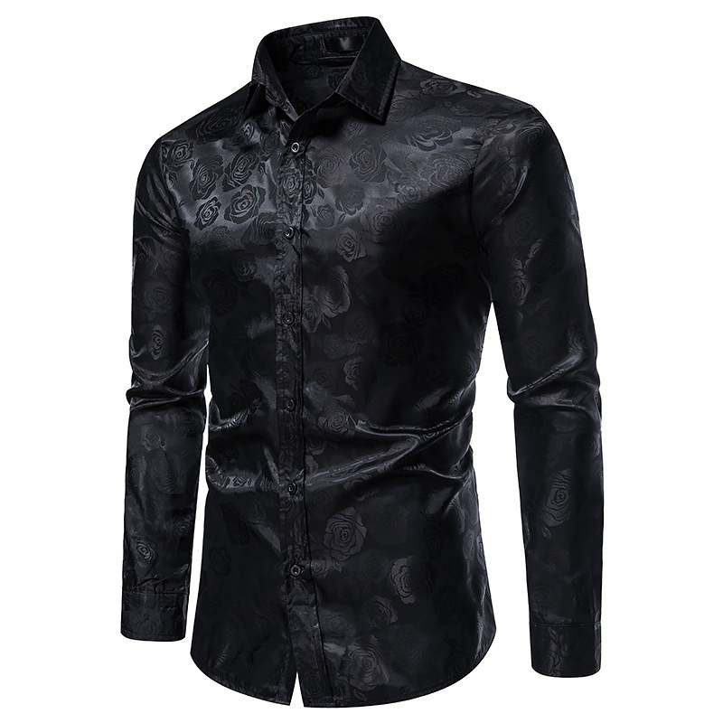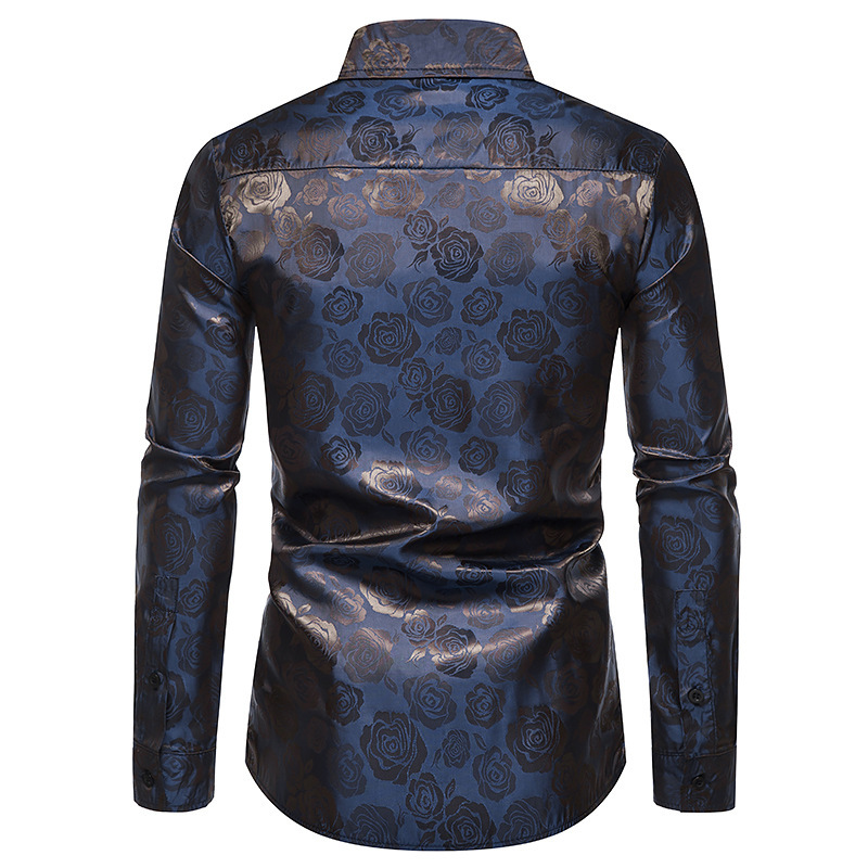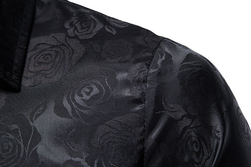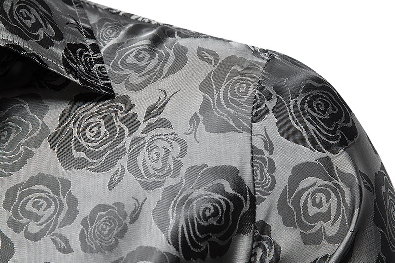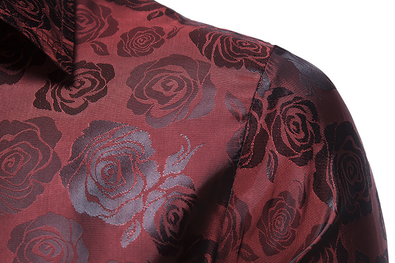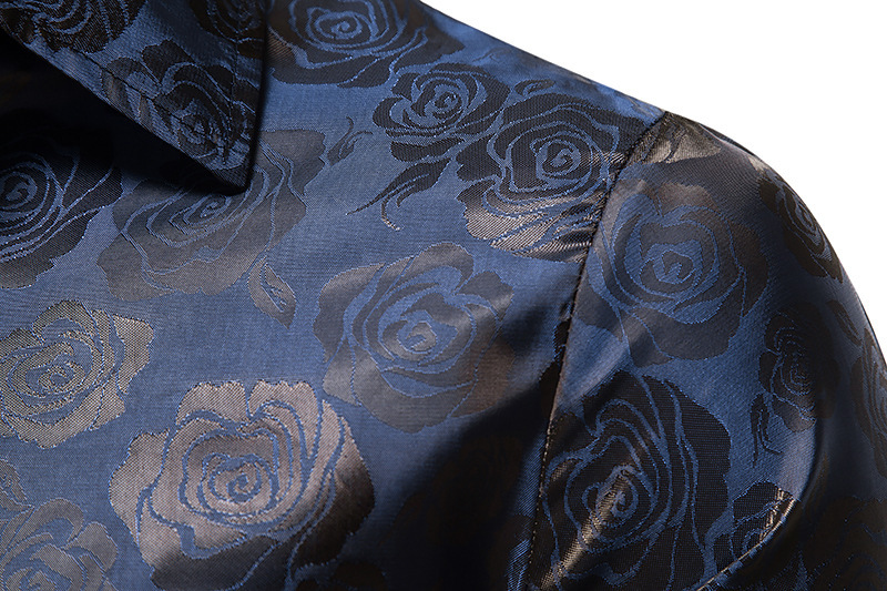 가을 2021 새로운 크로스 보더 남성 패션 로즈 프린트 긴팔 셔츠 대외 무역 남성 캐주얼 슬림 셔츠
