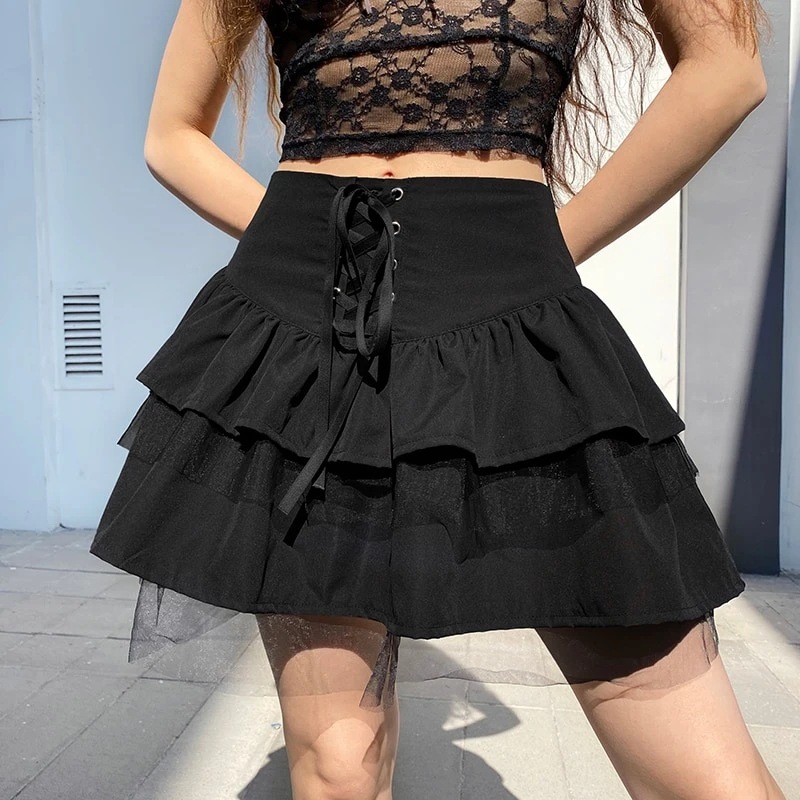 유럽과 미국과 일본의 귀여운 케이크 치마 향신료 소녀 봄과 여름 A-라인 짧은 치마 메쉬 스태킹 섹시한 미니 스커트
