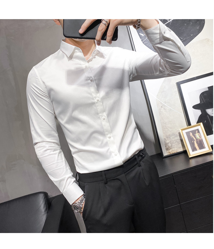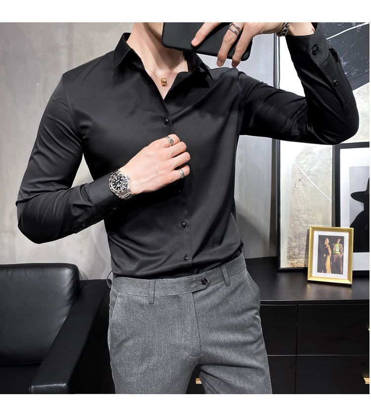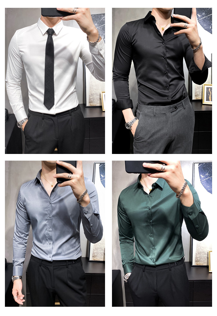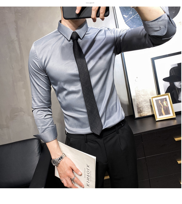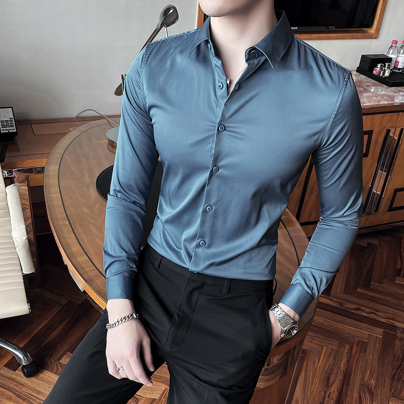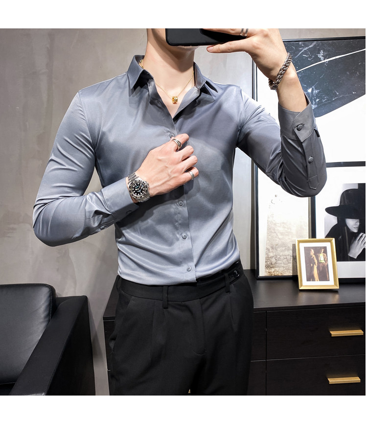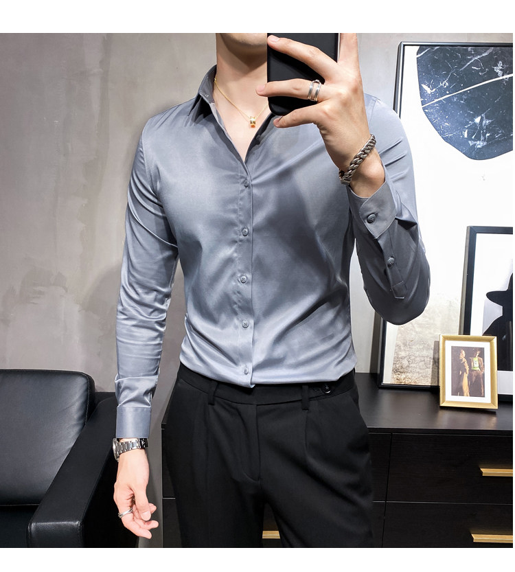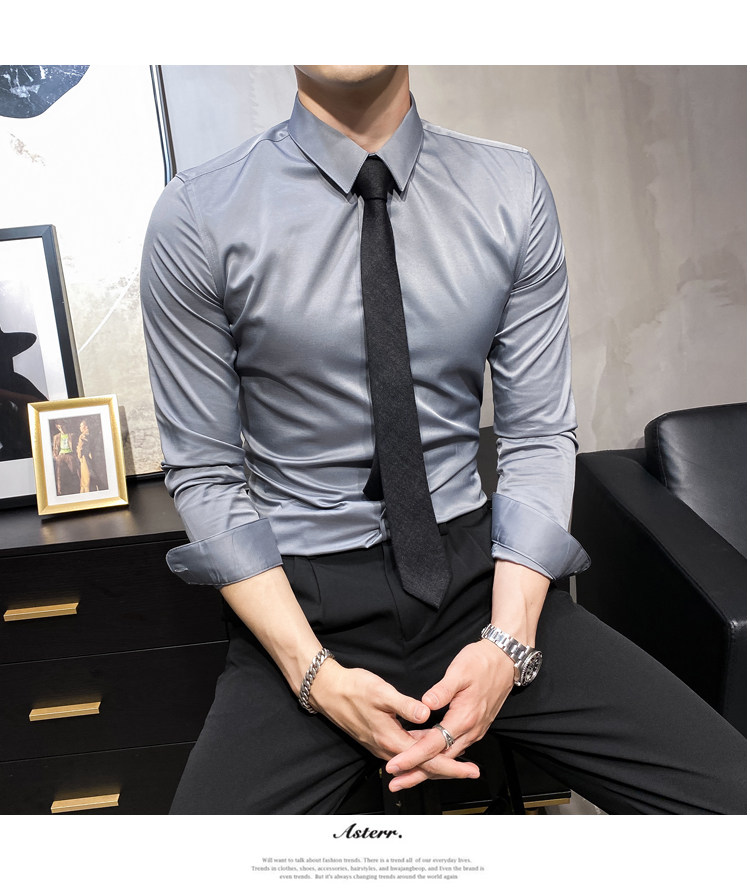헤어 도매 남성용 긴 소매 셔츠 한국 편안한 슬림 비 다림질베이스 셔츠 비 다림질 회색 셔츠스토어 가기