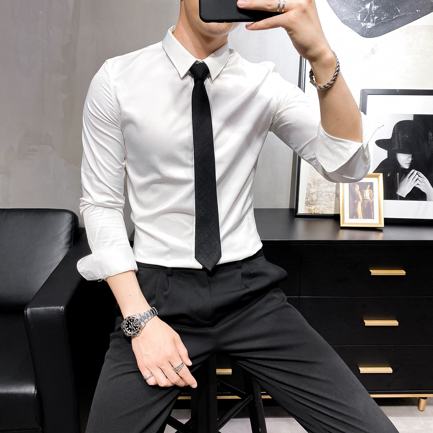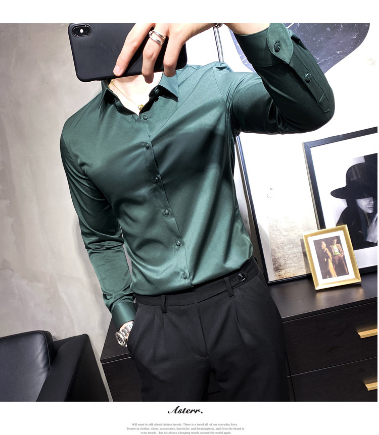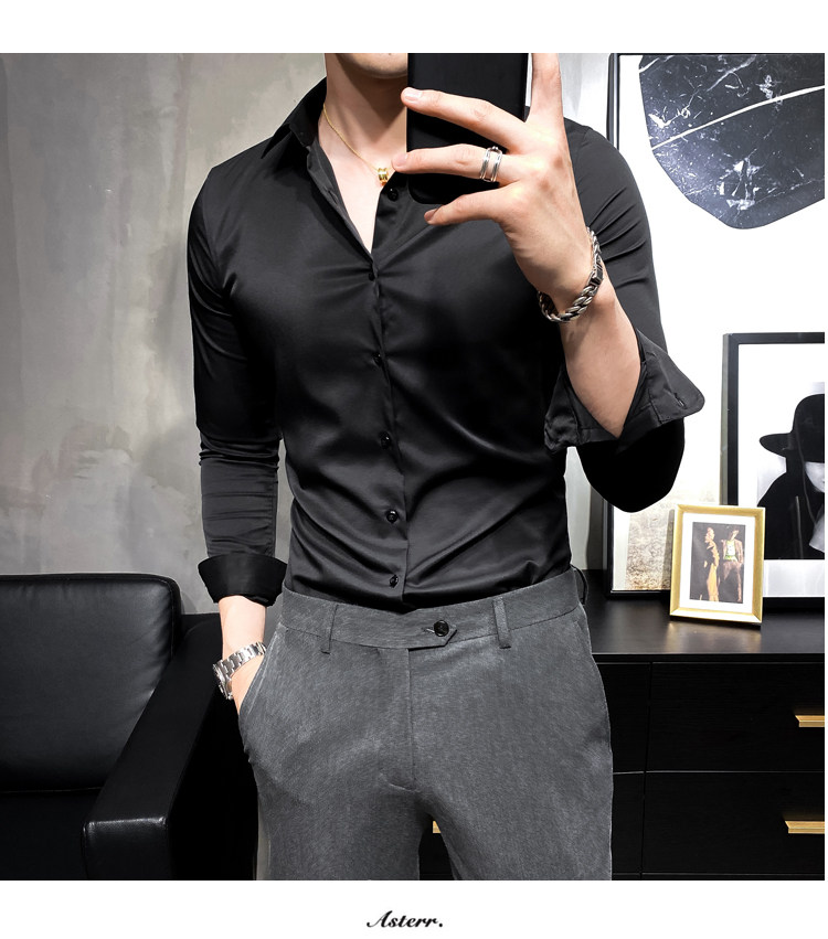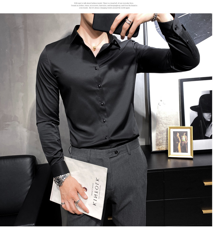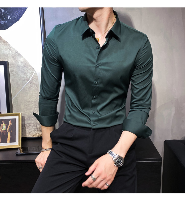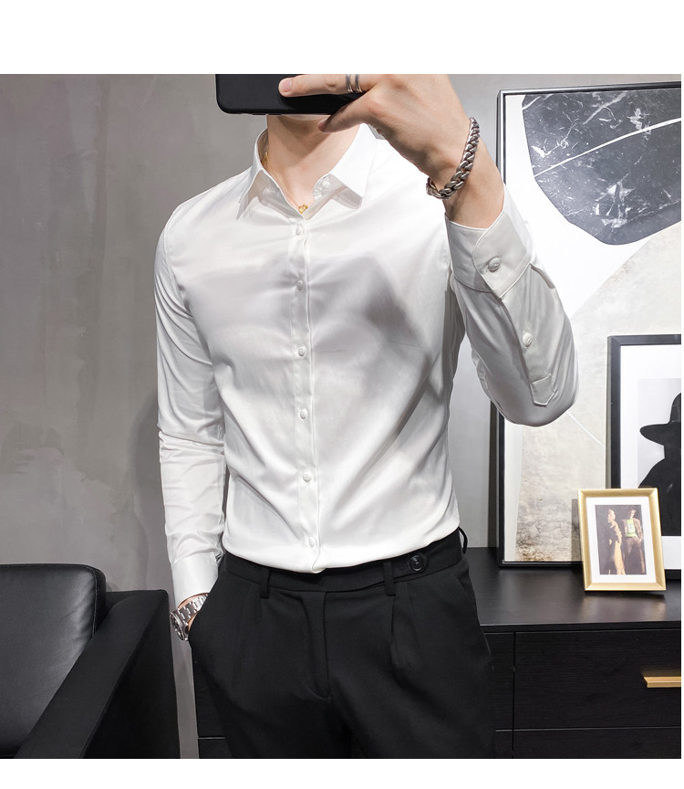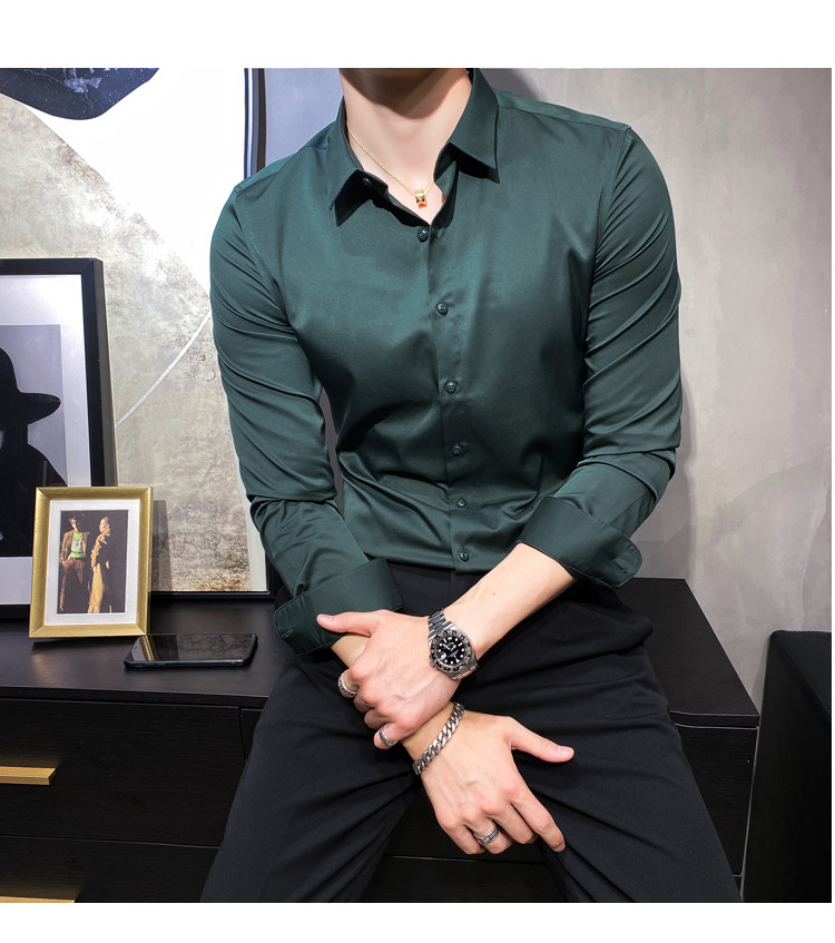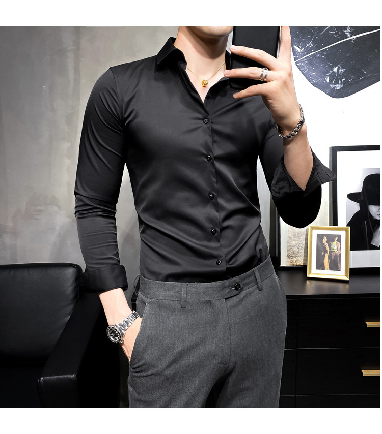 헤어 도매 남성용 긴 소매 셔츠 한국 편안한 슬림 비 다림질베이스 셔츠 비 다림질 회색 셔츠스토어 가기