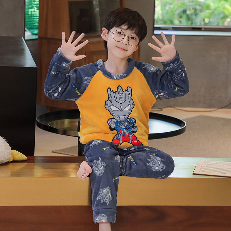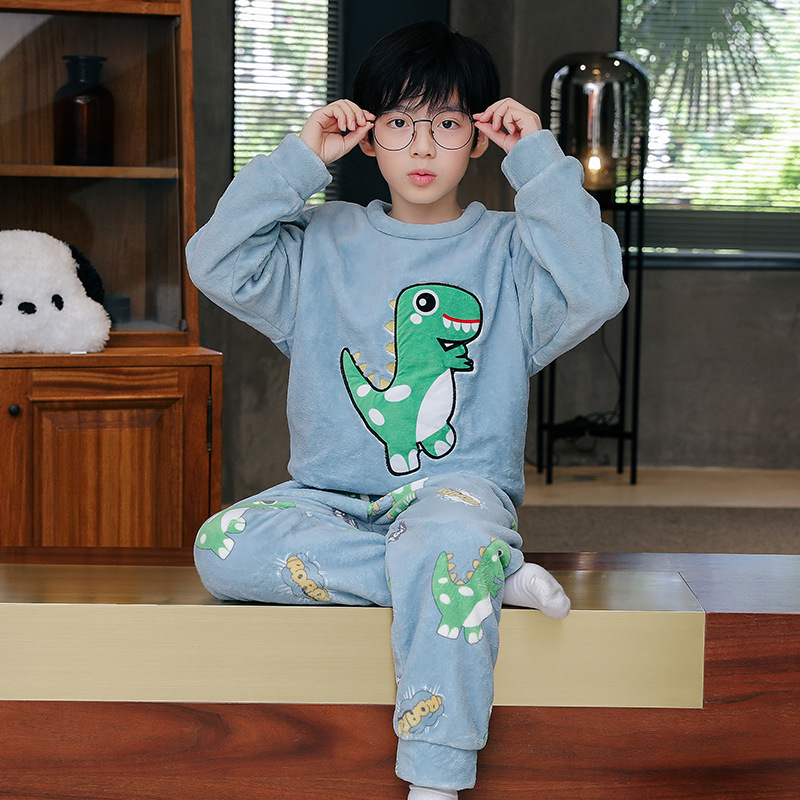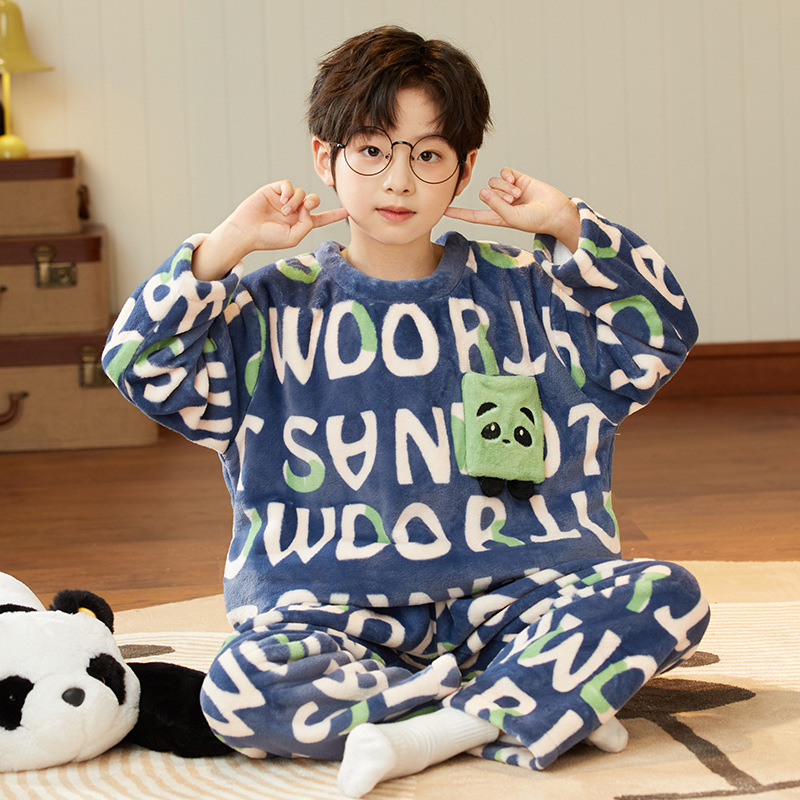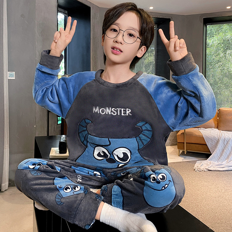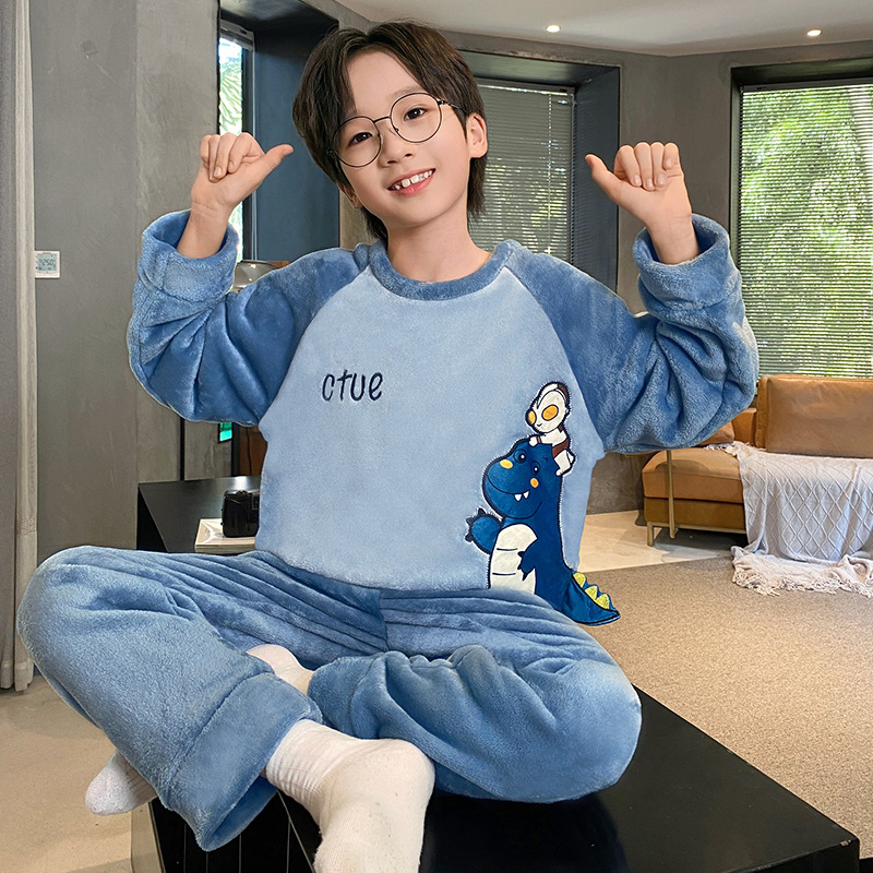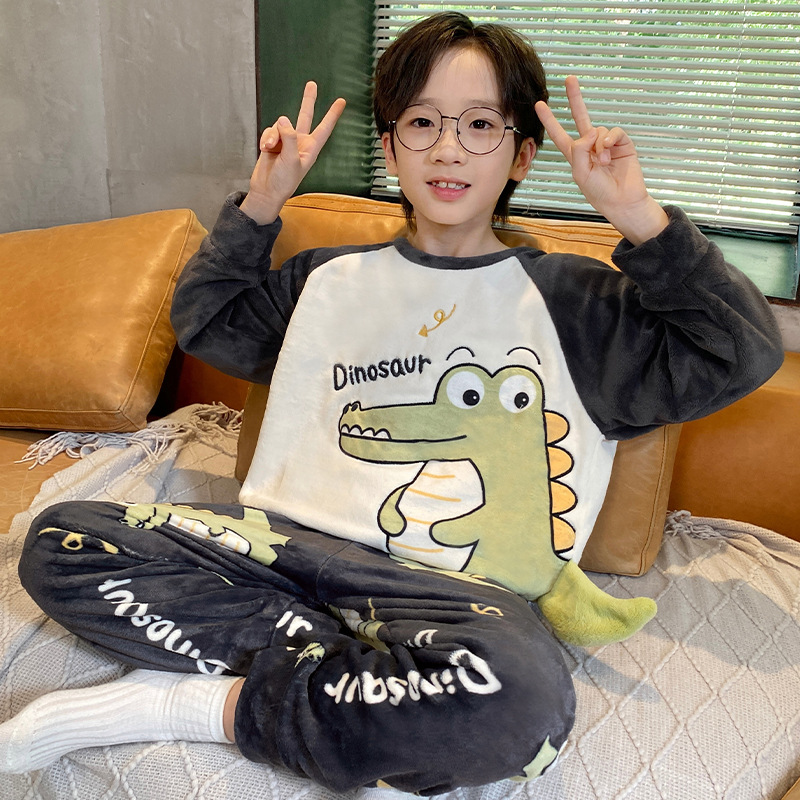 소년 '잠옷 봄과 가을과 겨울 플란넬 리틀 보이 10 산호 양털 아기 중간과 큰 소년 12 세 홈 서비스 세트스토어 가기