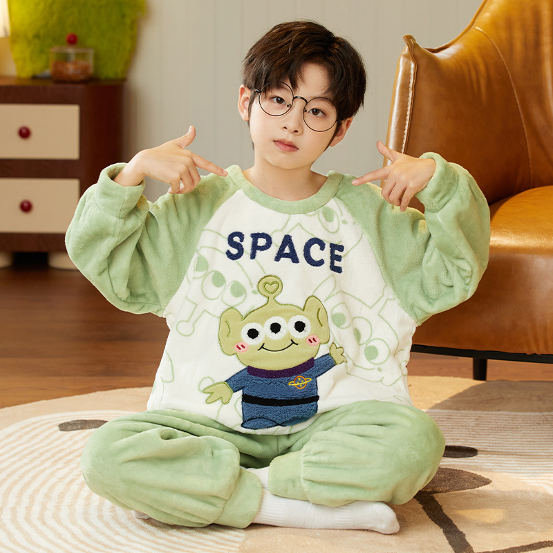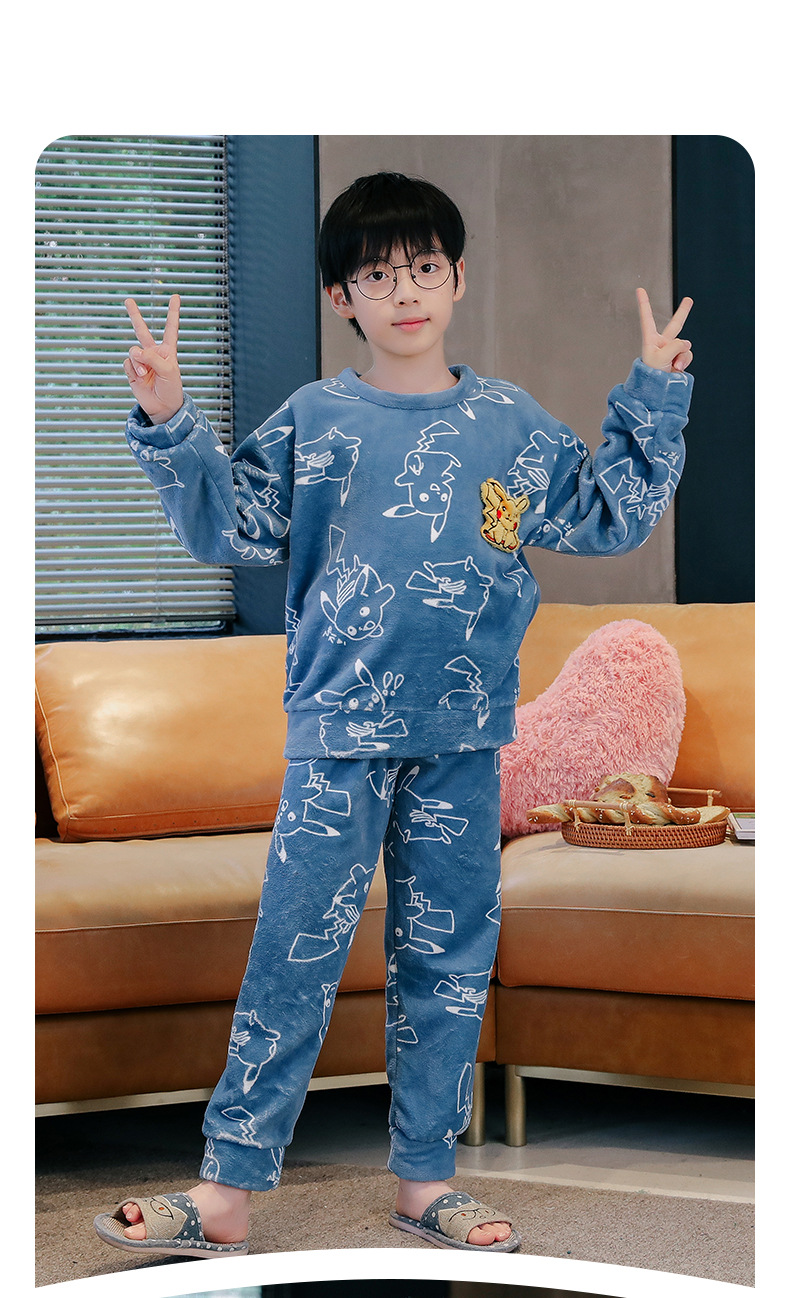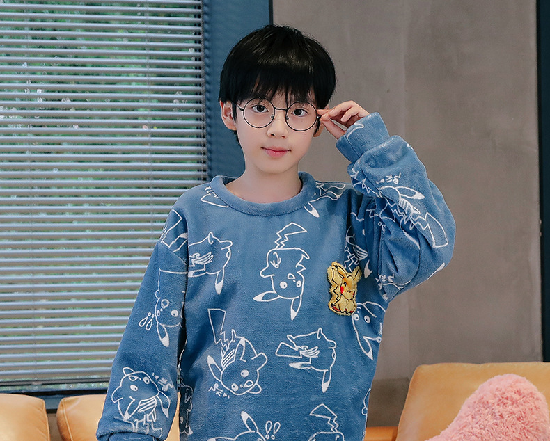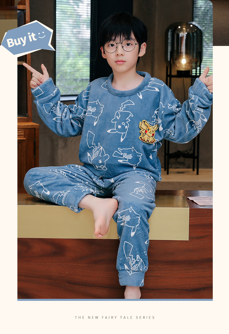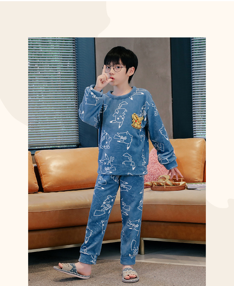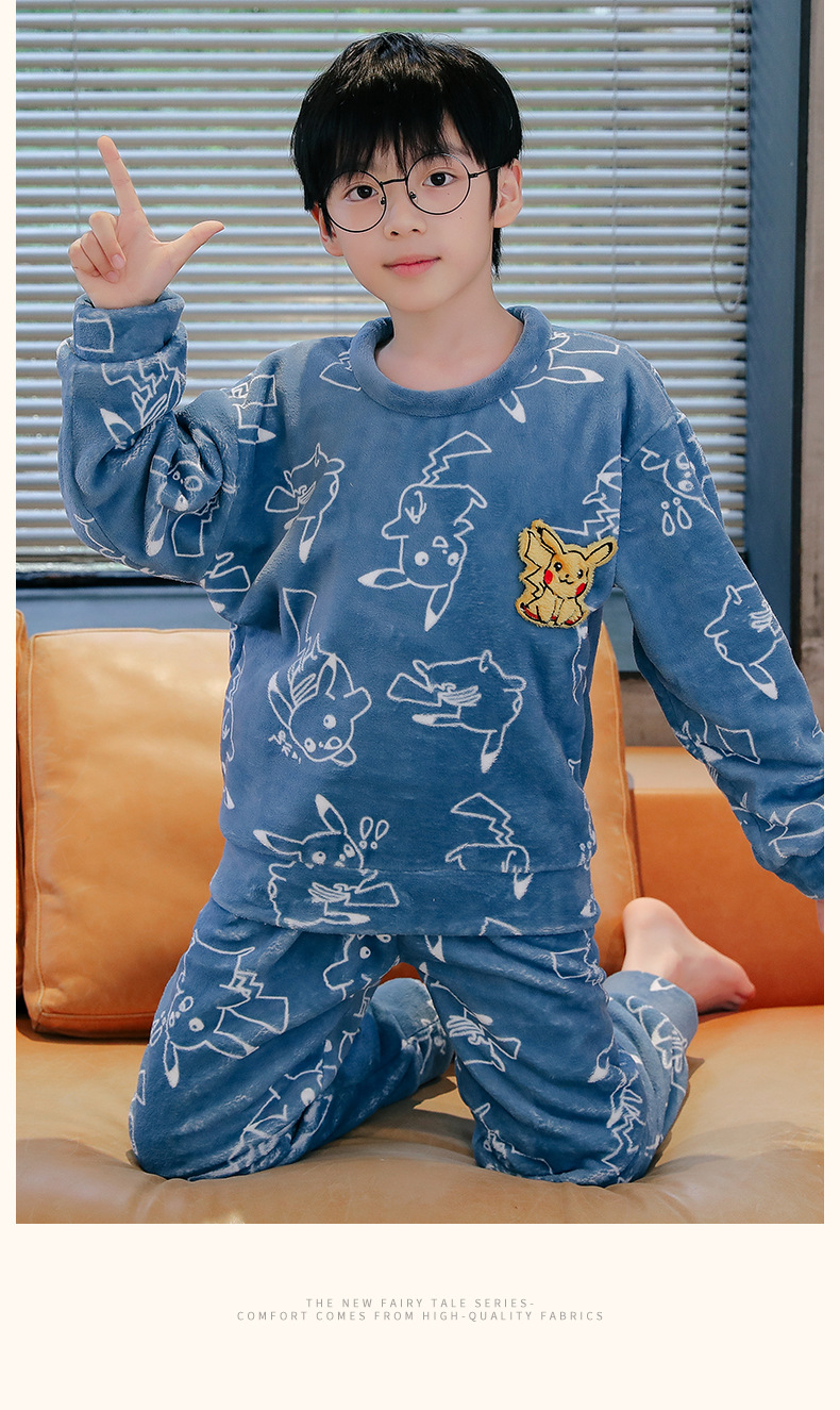 소년 '잠옷 봄과 가을과 겨울 플란넬 리틀 보이 10 산호 양털 아기 중간과 큰 소년 12 세 홈 서비스 세트스토어 가기