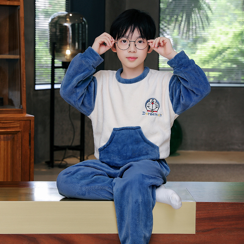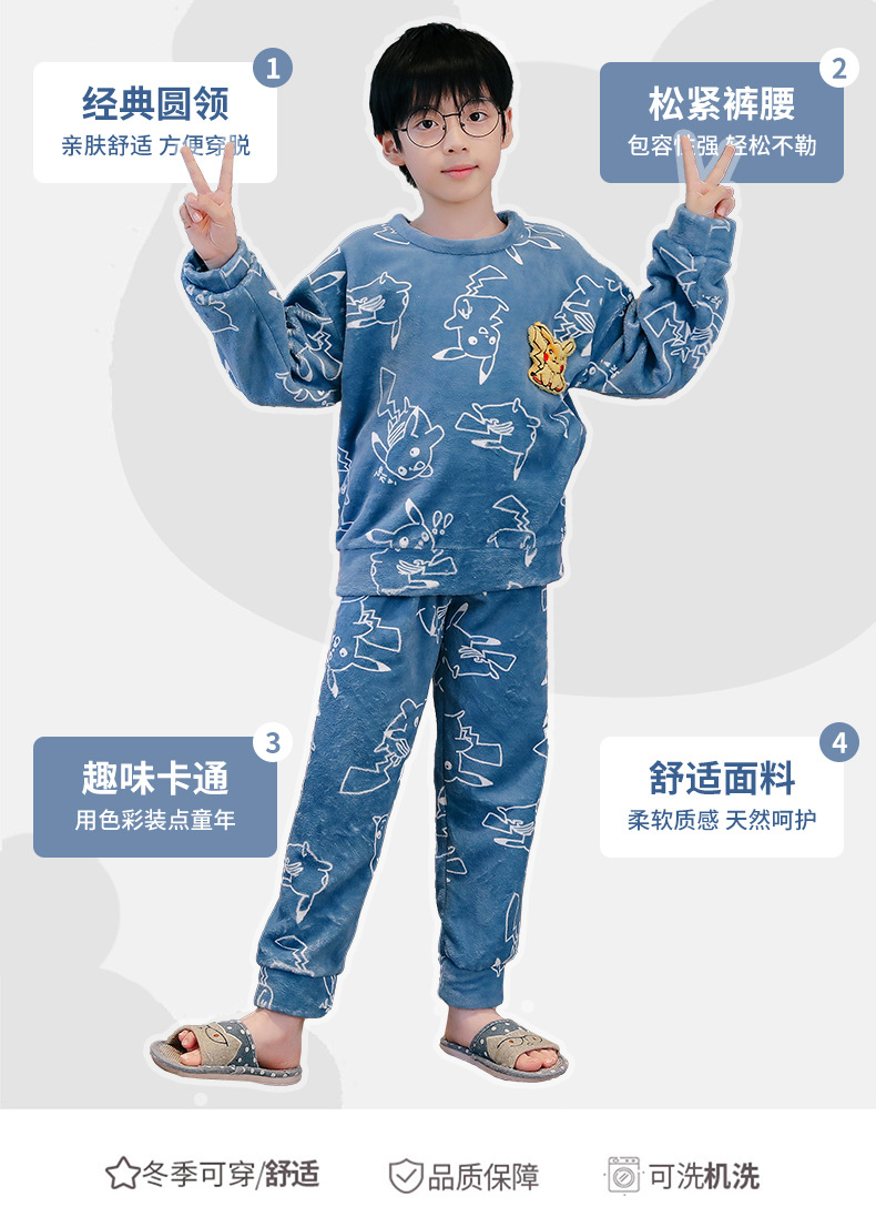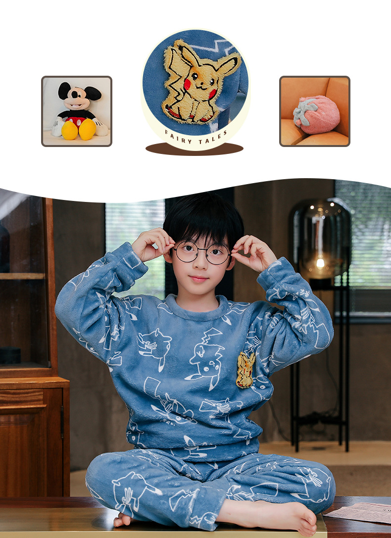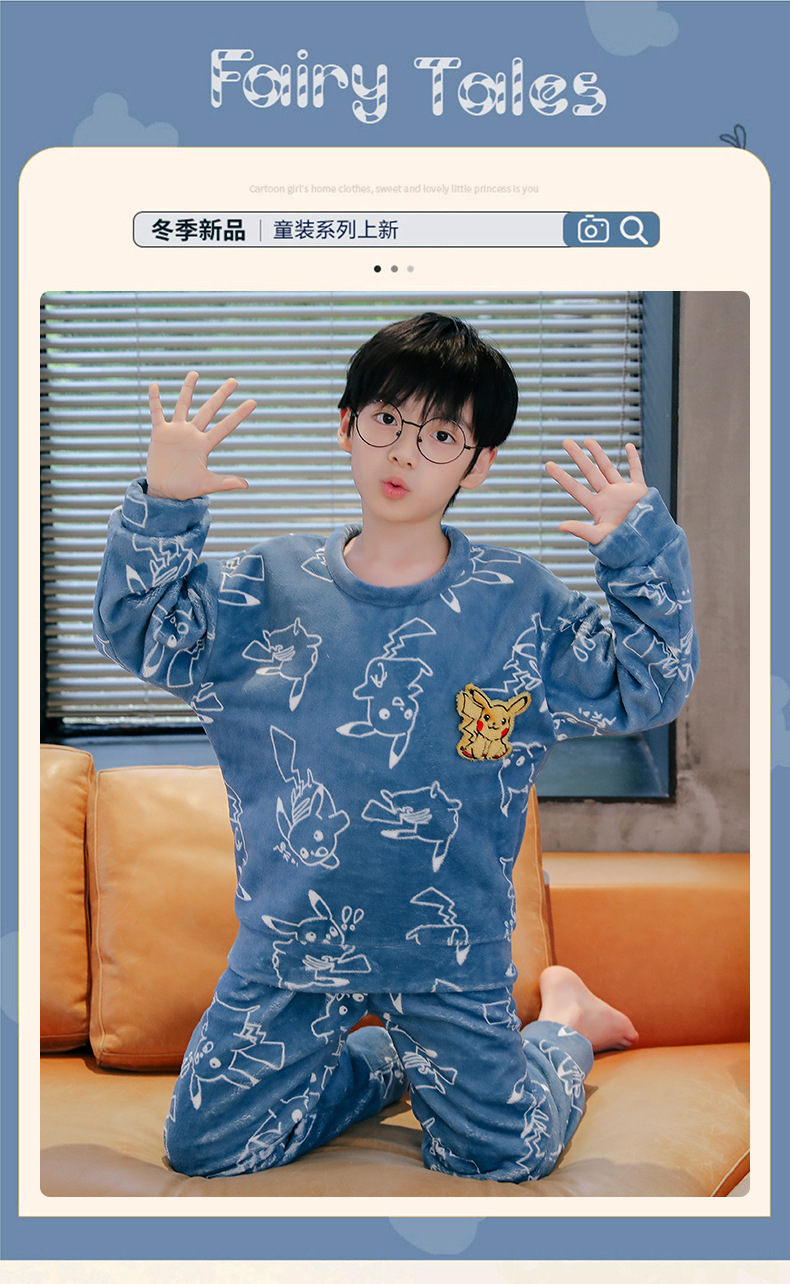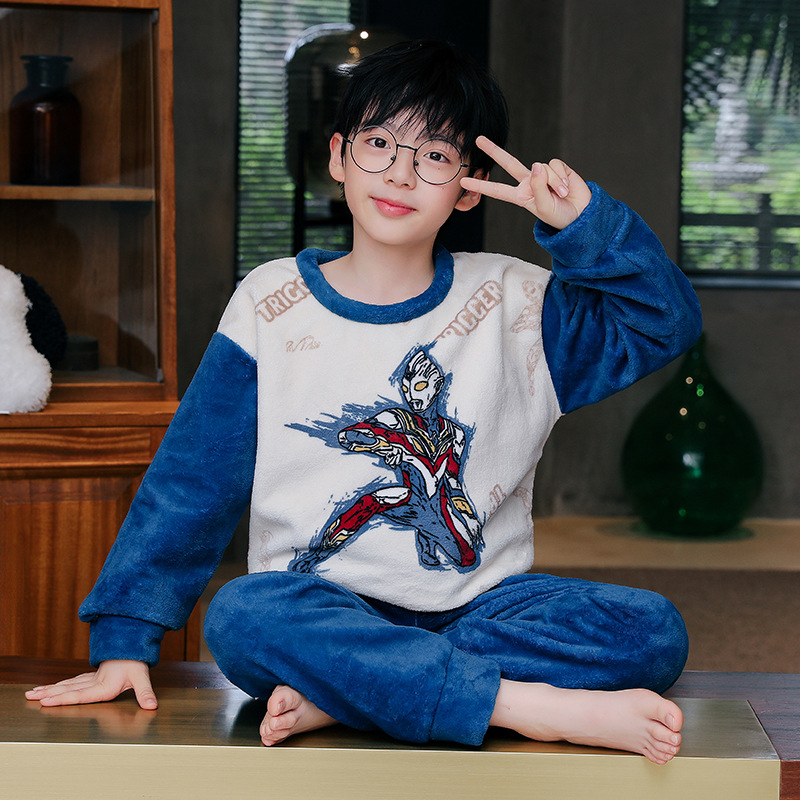 소년 '잠옷 봄과 가을과 겨울 플란넬 리틀 보이 10 산호 양털 아기 중간과 큰 소년 12 세 홈 서비스 세트스토어 가기