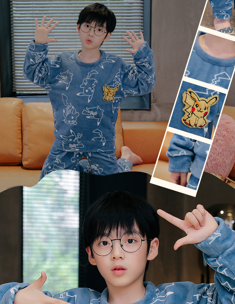 소년 '잠옷 봄과 가을과 겨울 플란넬 리틀 보이 10 산호 양털 아기 중간과 큰 소년 12 세 홈 서비스 세트