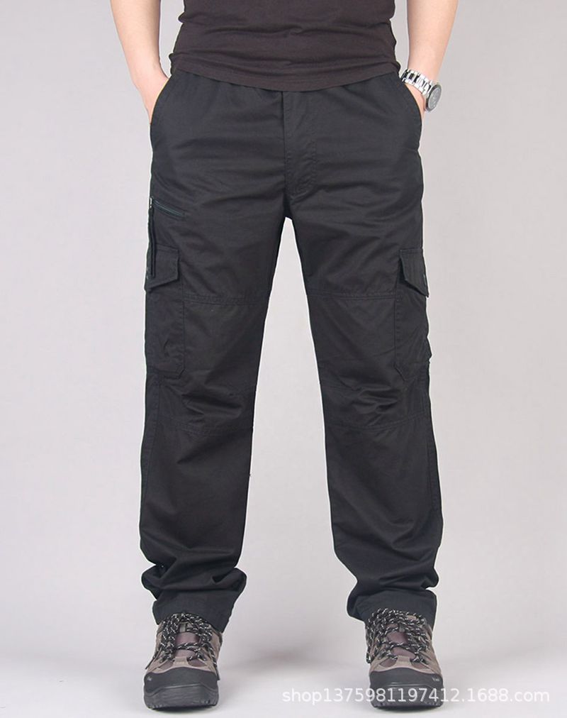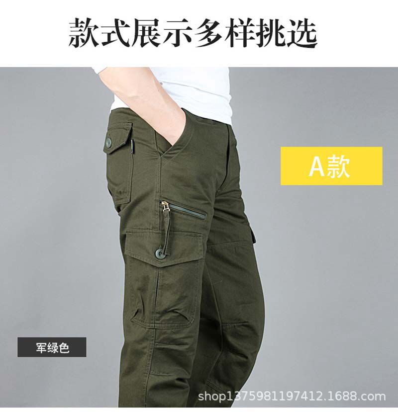 봄과 가을 멀티 백 야외 순면 카고 바지 남성용 트렌디 브랜드 느슨한 스트레이트 플러스 사이즈 작업 바지 등산 캐주얼 바지스토어 가기