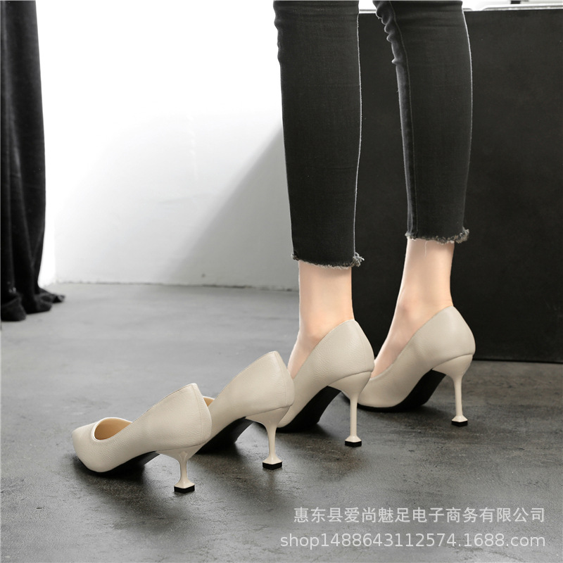 M14-high 하이힐 여성 2021new stiletto heel 뾰족한 기질 검은 얕은 입 단일 레이어 신발 여성 신발 단층 신발이 지방을 넓혔습니다.스토어 가기