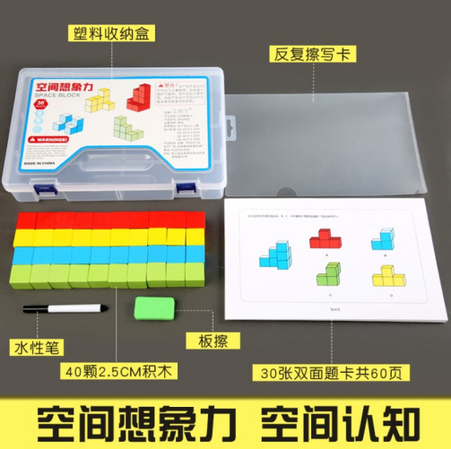 계몽 훈련 퍼즐 빌딩 블록 유치원 교구 장난감을 향상시키는 도매 목조 사각형 공간 아기 집중스토어 가기