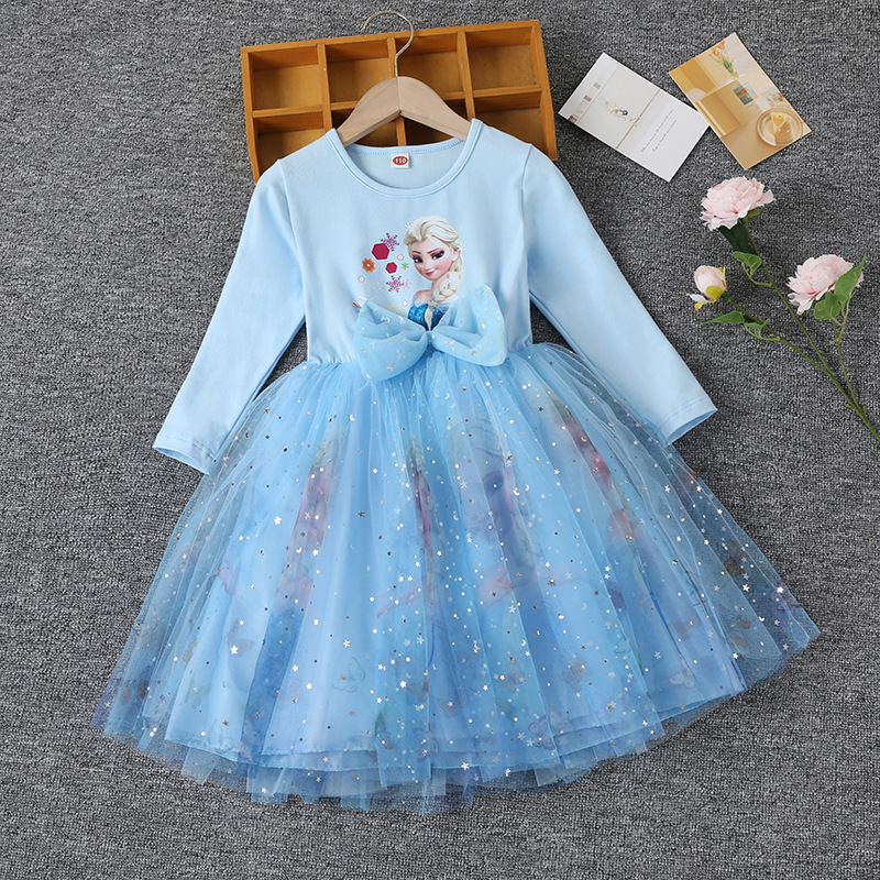 새로운 공주 아이샤 원피스 소녀의 봄과 가을 원피스 냉동 어린이 가을 서양 스타일 활 원피스