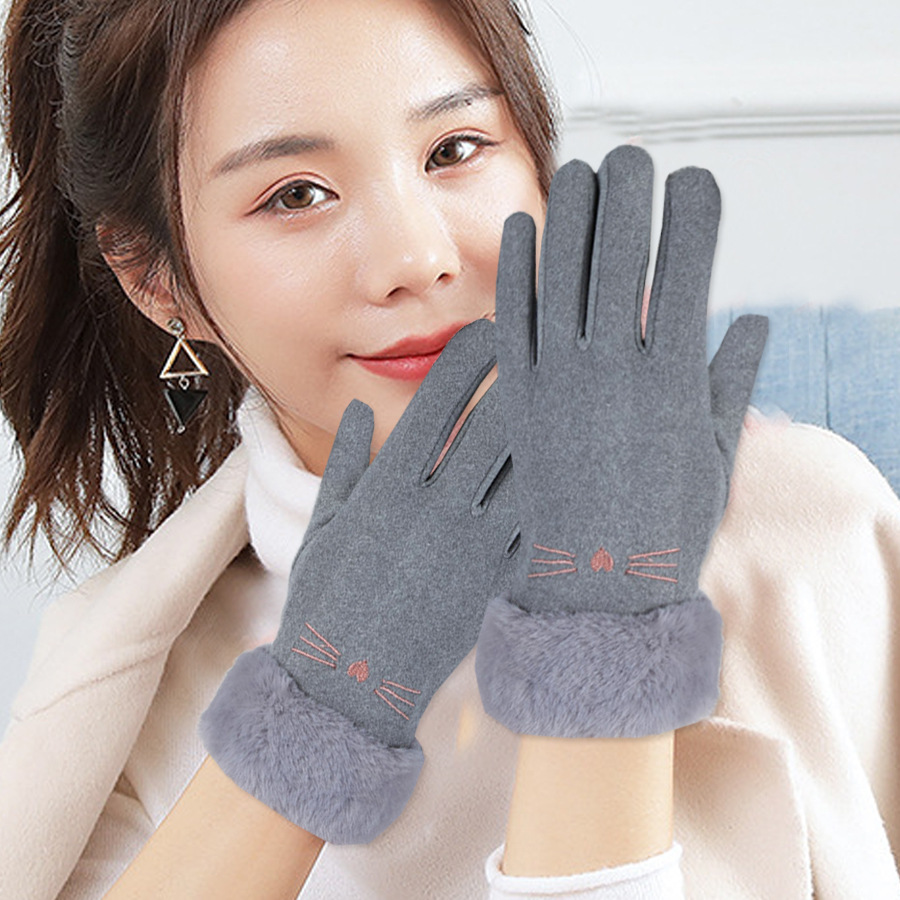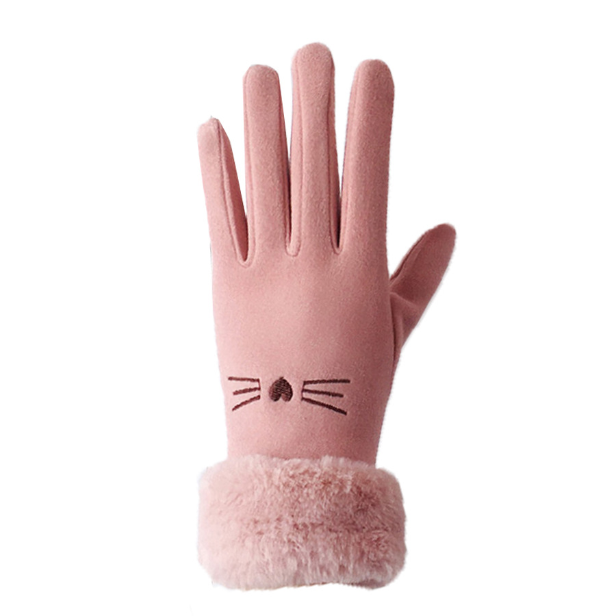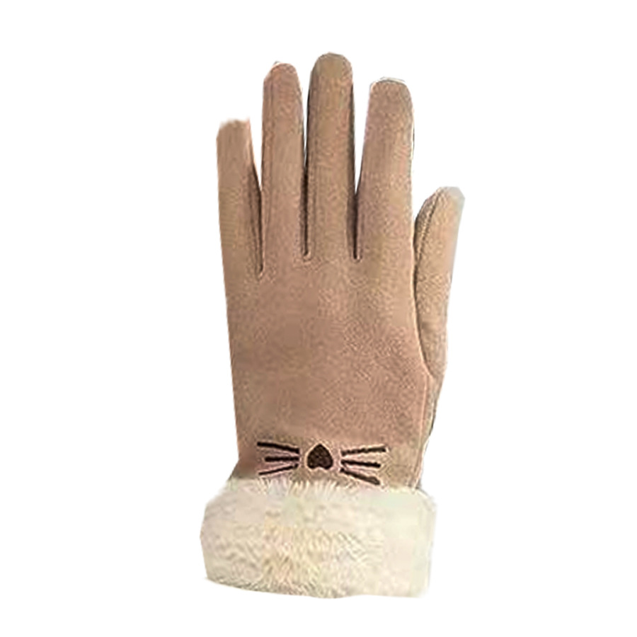 가을과 겨울 따뜻한 장갑 여자의 승마 터치 스크린 한국식 귀여운 다섯 손가락 기모 두꺼운 스웨이드 장갑 학생