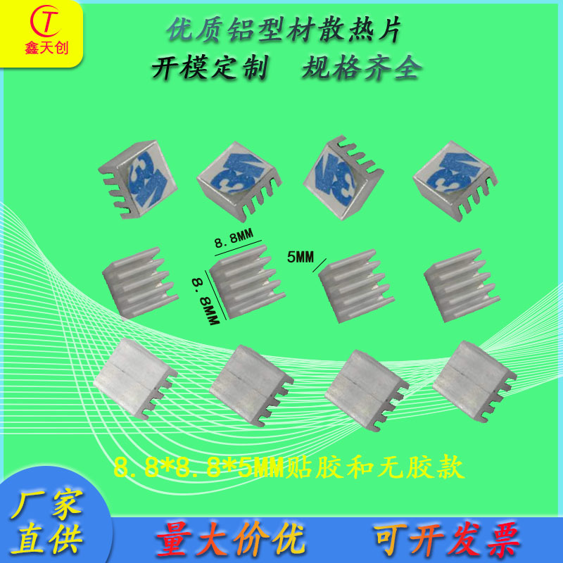 전자 알루미늄 라디에이터 CPU 모듈 카메라 IC 알루미늄 방열판 8.8mm 폭 8.8mm 두께 5mm 접착제스토어 가기