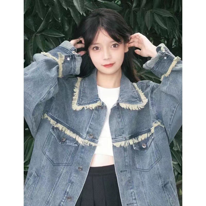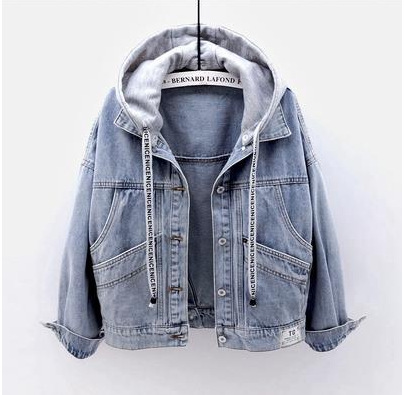일본과 한국 스타일 슈퍼 인기 데님 짧은 코트 여자의 짧은 봄과 가을 새로운 긴 소매 슬림 핏 후드 재킷 학생 탑스토어 가기