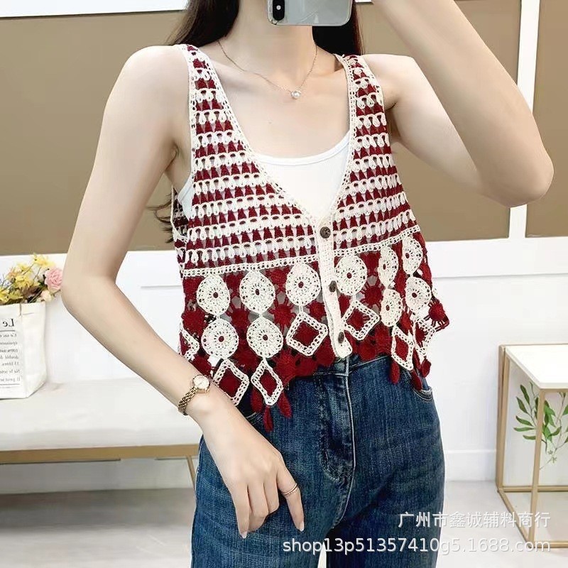 프랑스 스타일 레트로 니트 샤넬 스타일 조끼 여성용 중공 얇은 모든 경기 대학 스타일 스택 조끼 외부 탑스토어 가기
