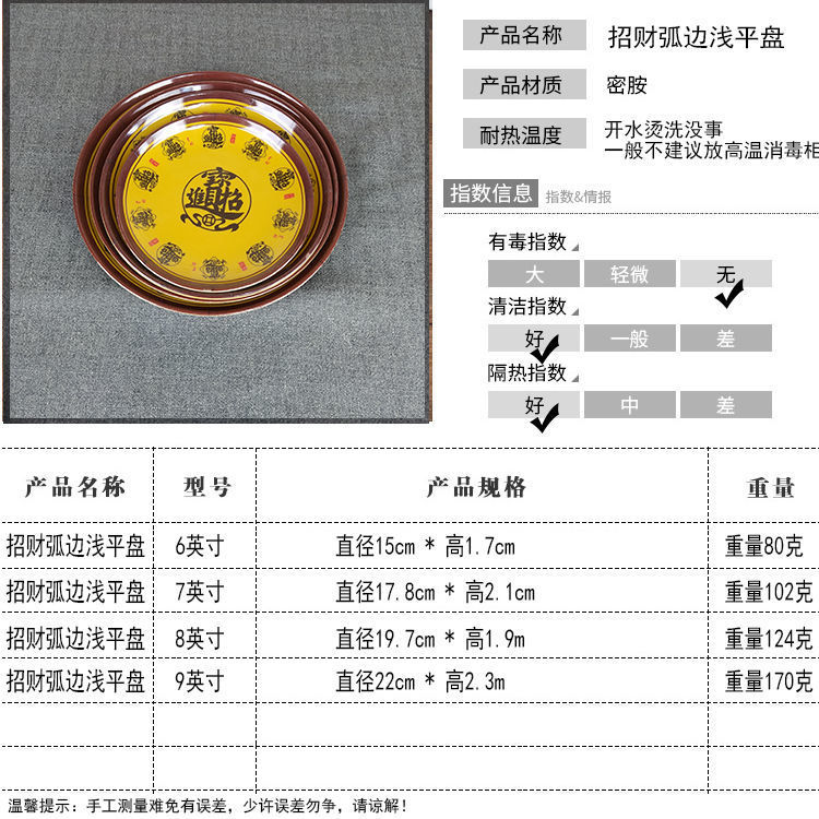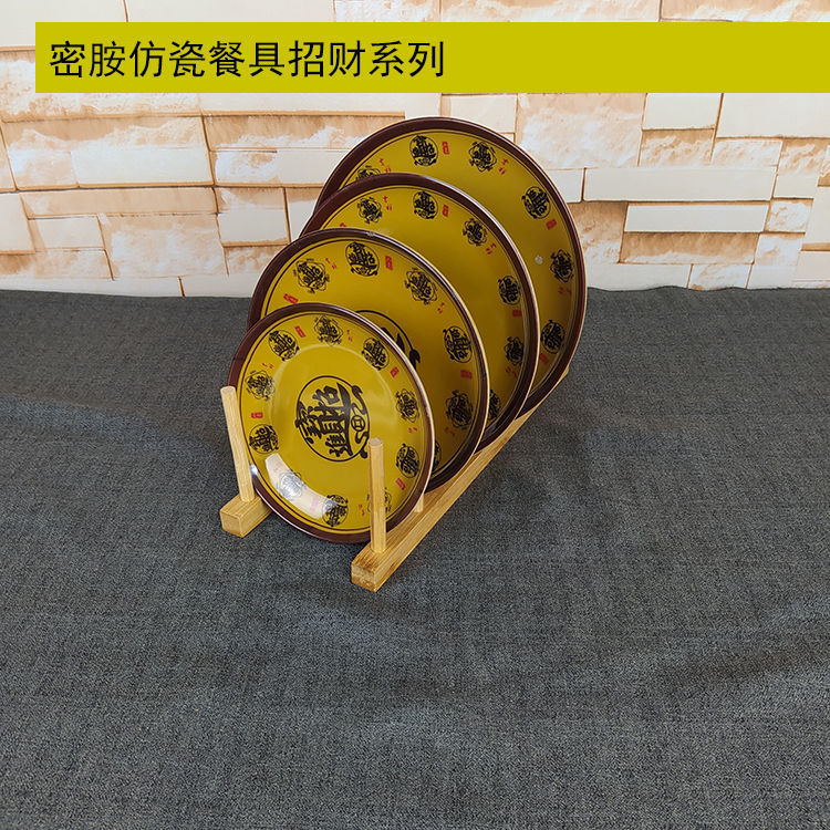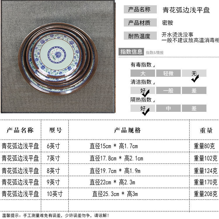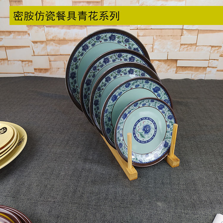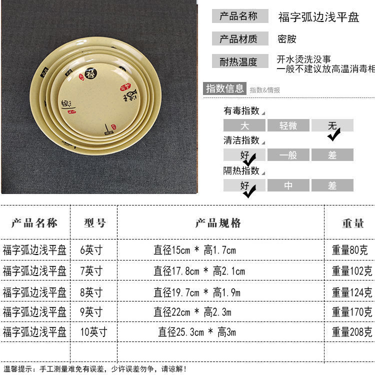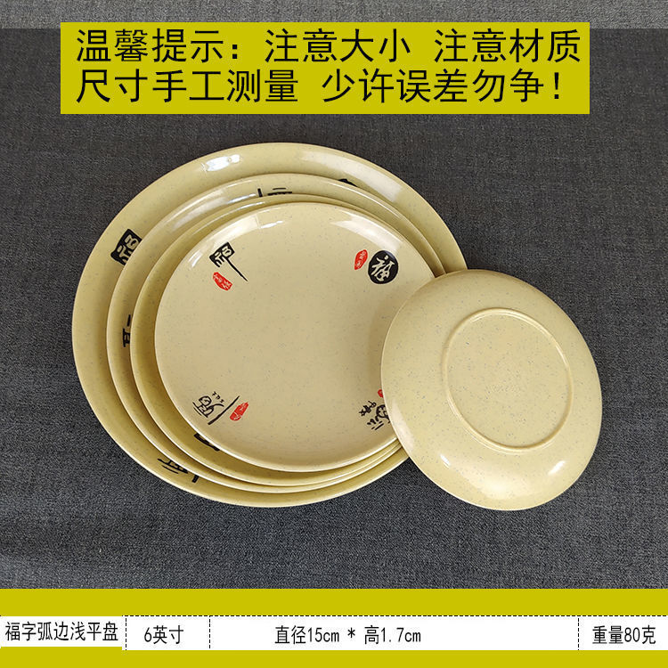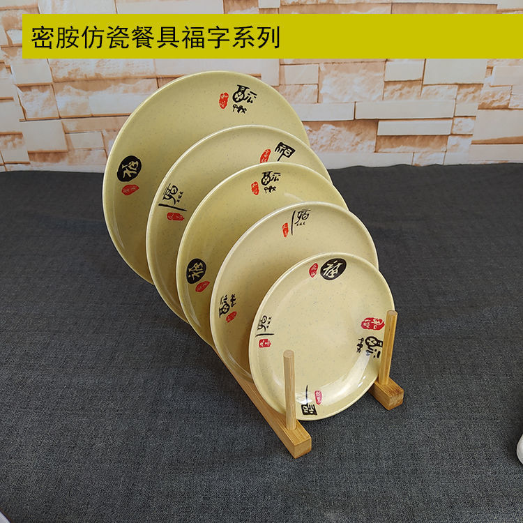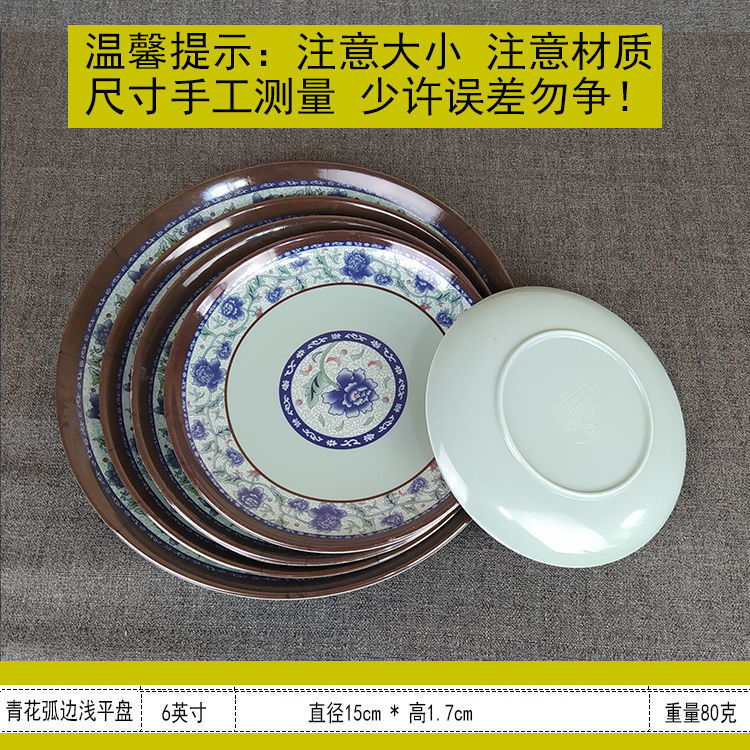 다채로운 플레이트 파란색과 흰색 행운의 단어 둥근 드롭 방지 멜라민 모방 도자기 플라스틱 곡선 가장자리 얕은 레스토랑 셀프 서비스 플레이트스토어 가기