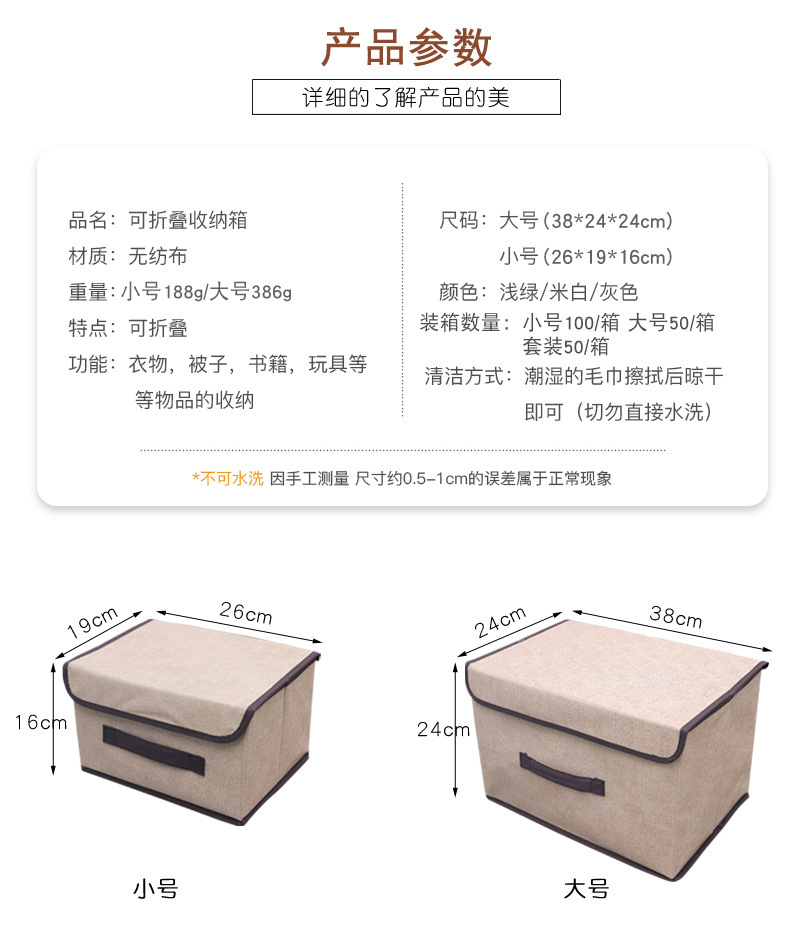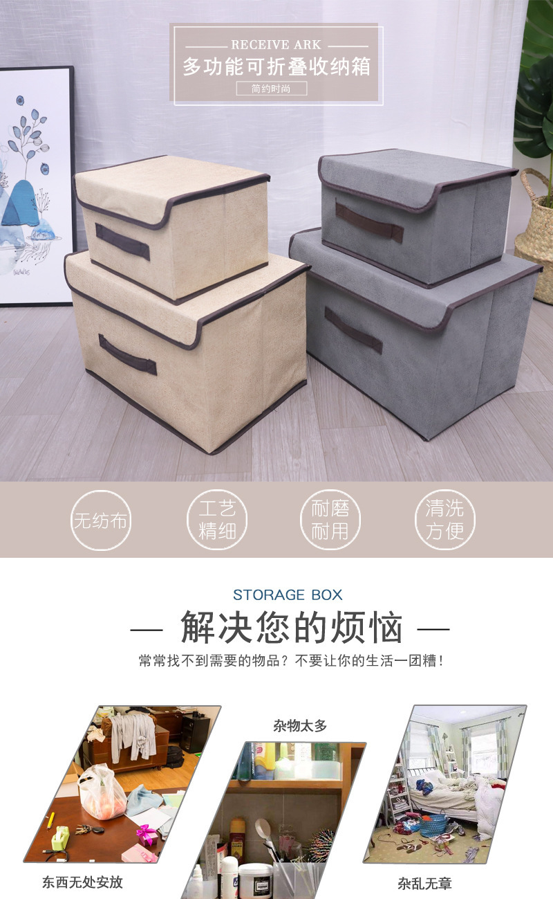 부직포 저장 상자 홈 자동차 접이식 방진 의류 보관 상자 뚜껑 작은 맞춤 라벨링