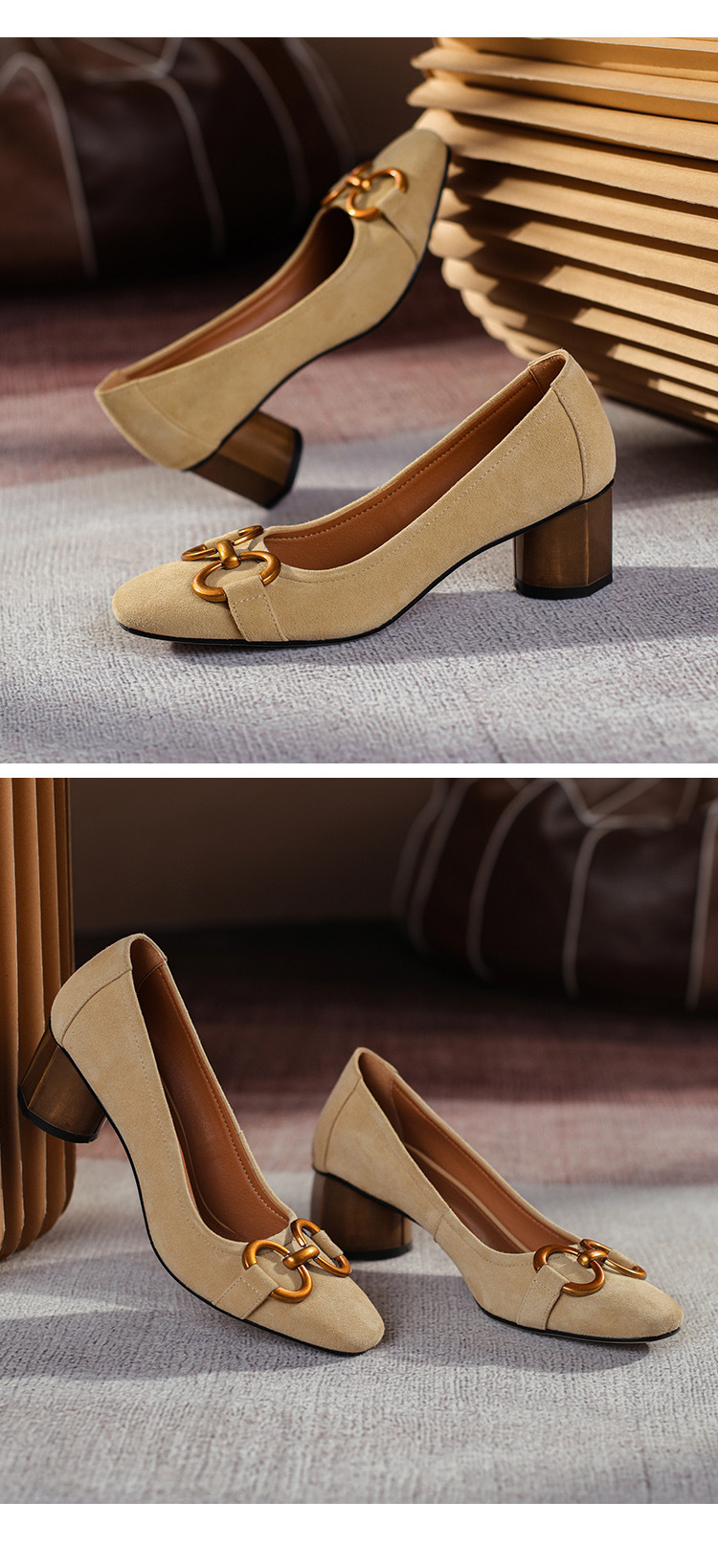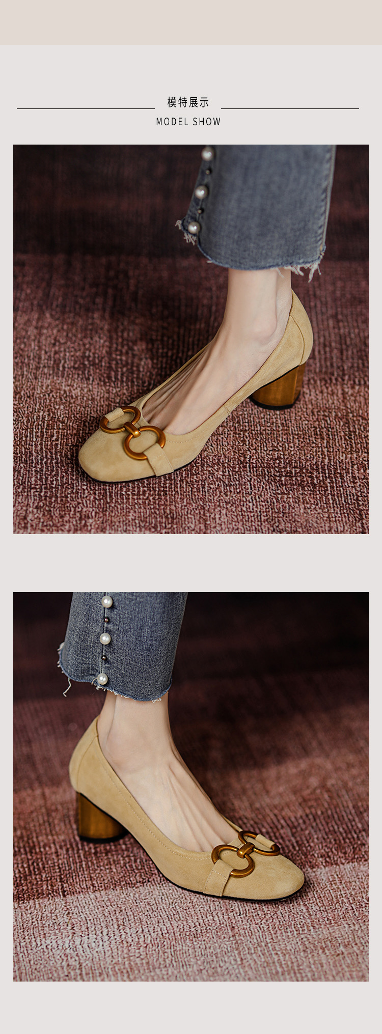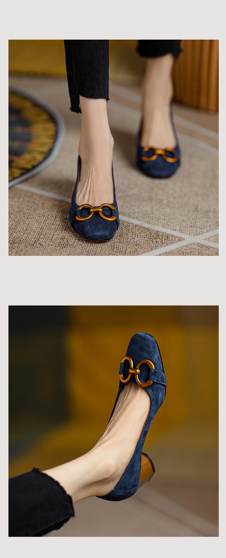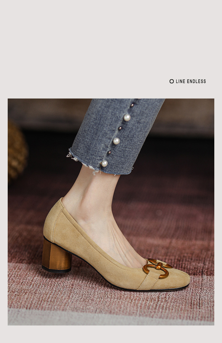 蓝色方头浅口单鞋女2021年新款春款女鞋法式高跟鞋女磨砂金属粗跟