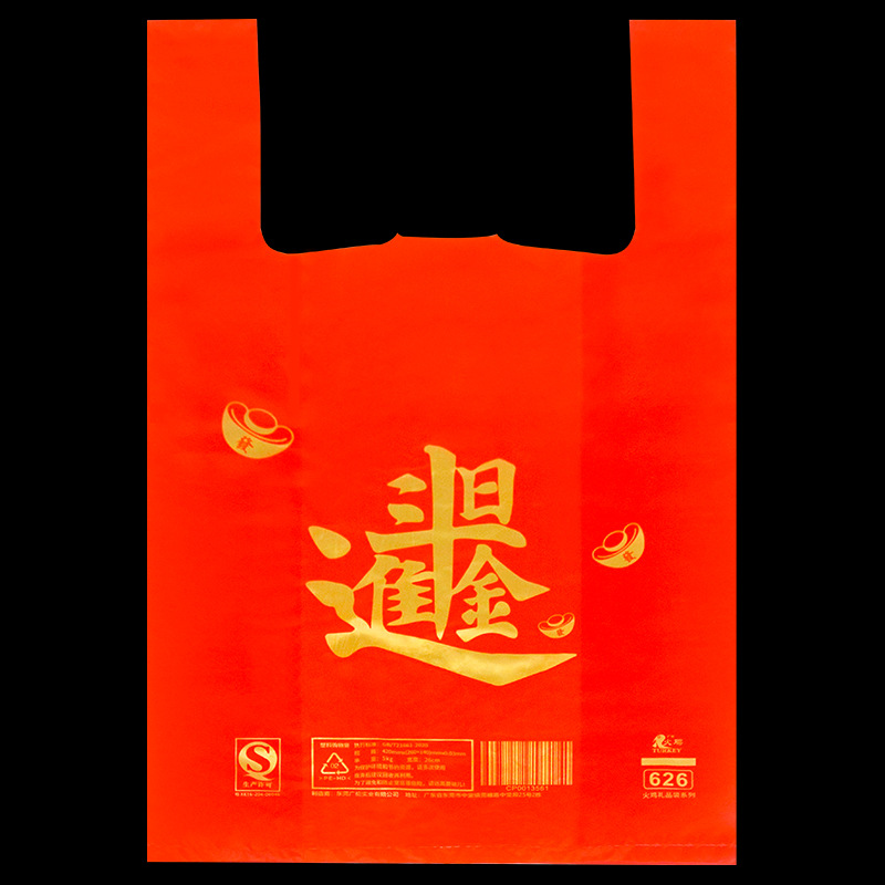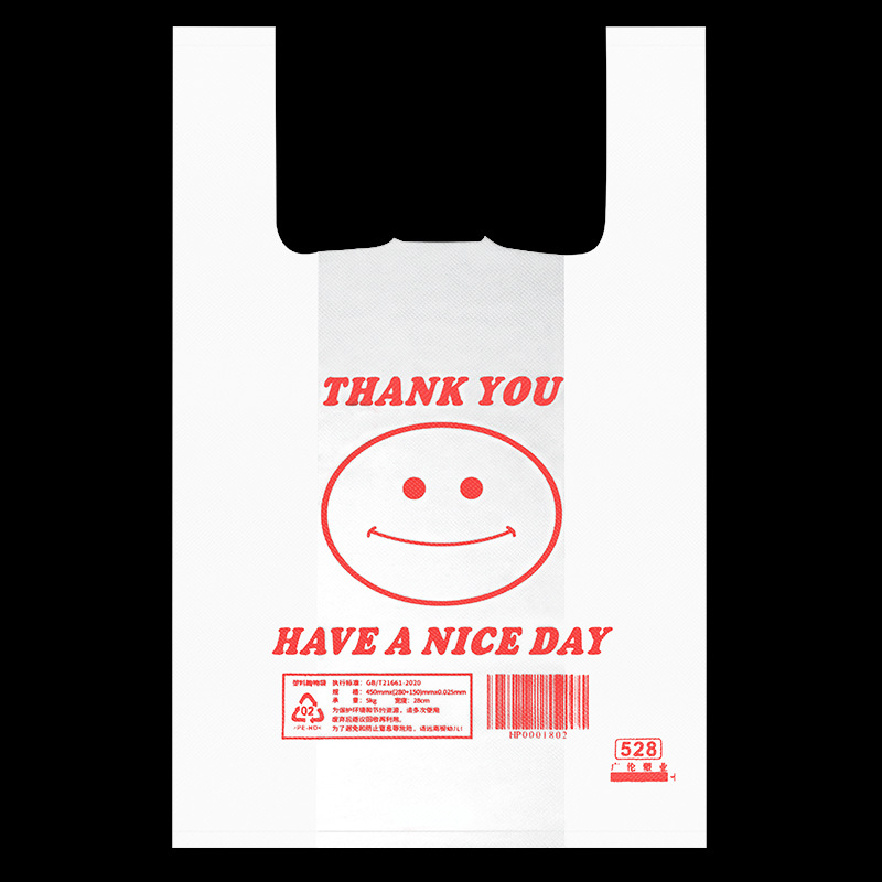 투명 슈퍼마켓 웃는 얼굴 편의 가방 조끼 가방 두꺼운 쇼핑 가방 휴대용 테이크 아웃 포장 빨간색 비닐 봉투 도매