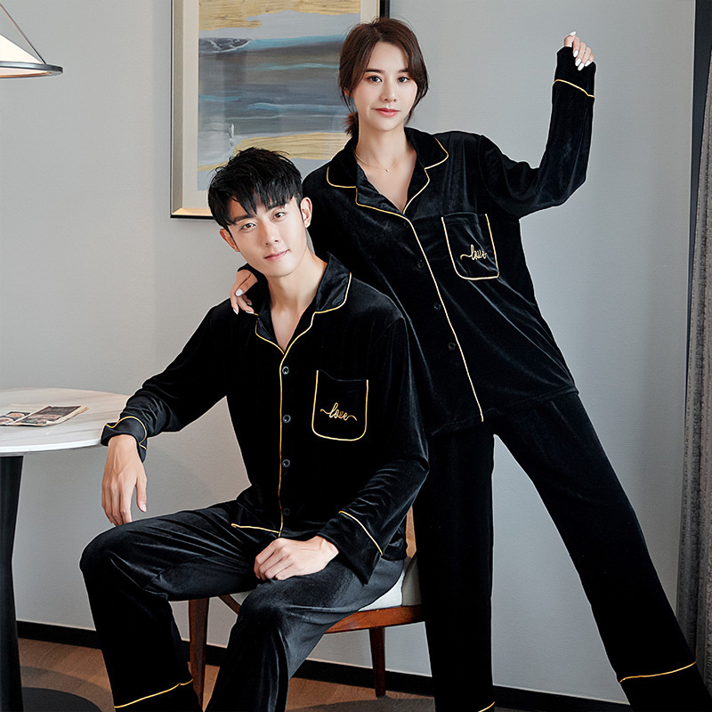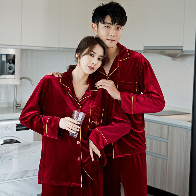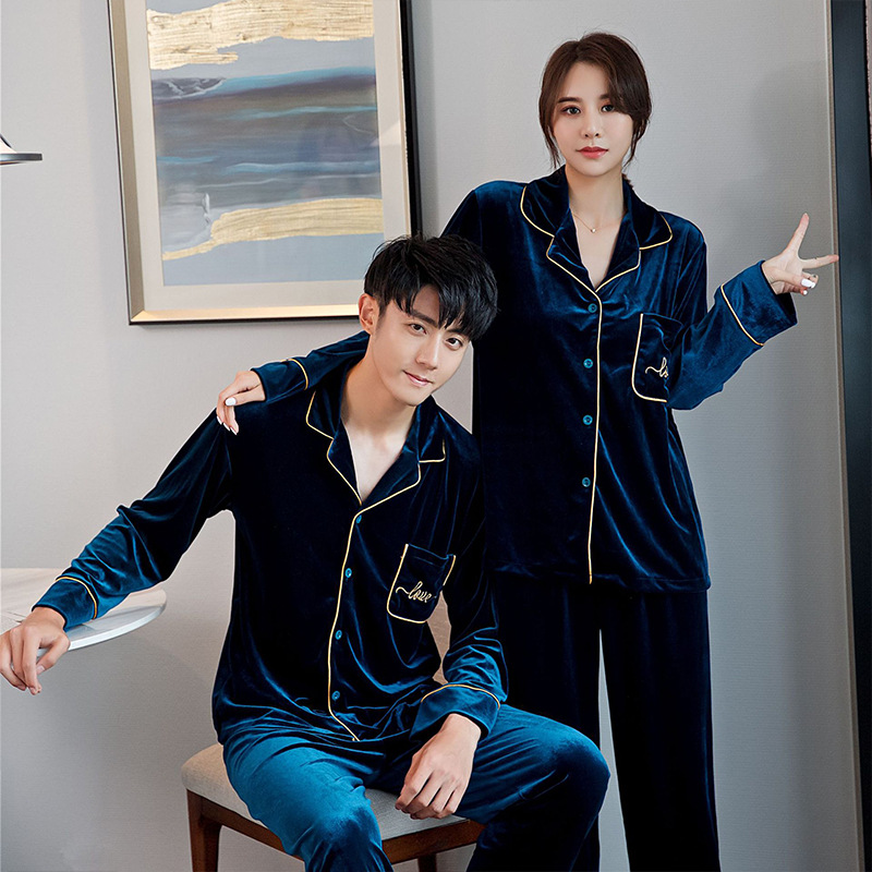 가을과 겨울 새로운 골드 벨벳 잠옷 커플 긴 소매 바지 가정 의류 편안한 부드러운 멀티 컬러 공장 직접 공급