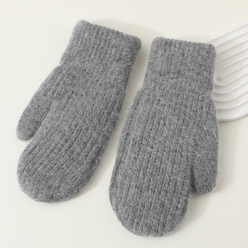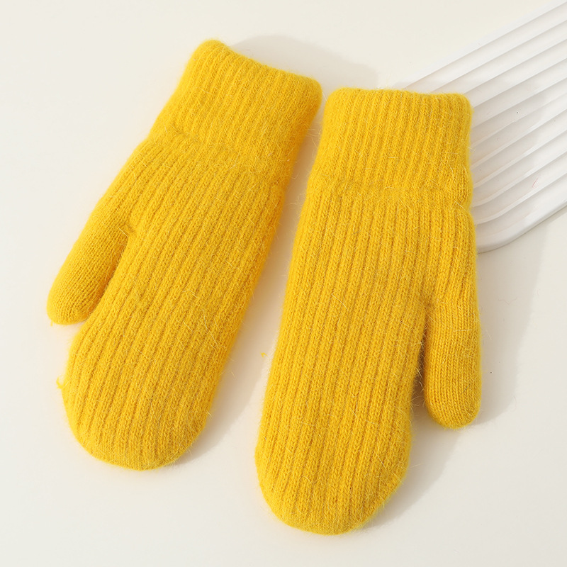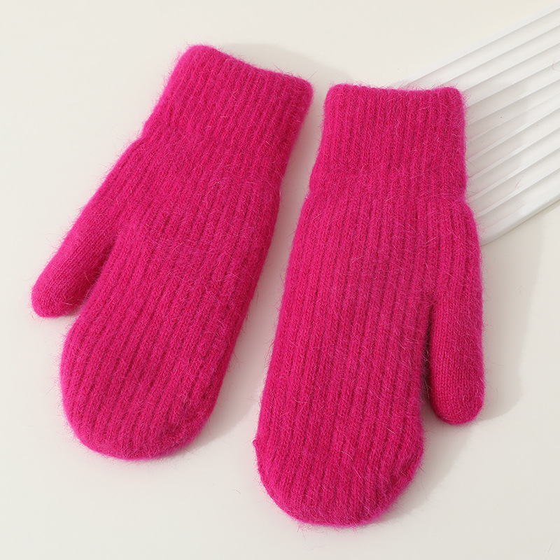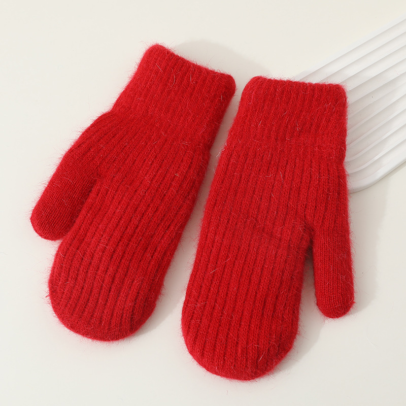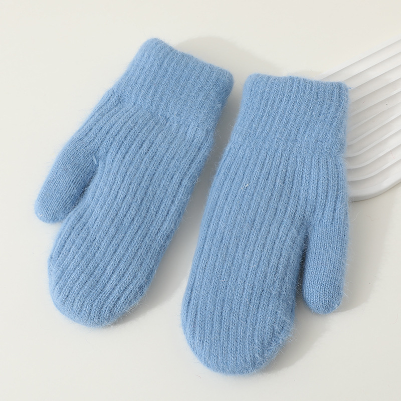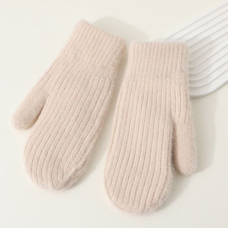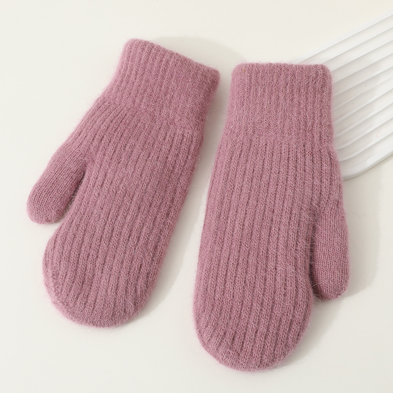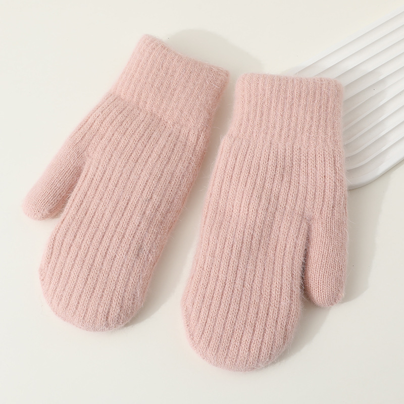 겨울용 여성용 귀여운 단색 플러시 장갑, 두꺼운 보온 학생용 자전거용 방한 장갑, 겨울 유행스토어 가기