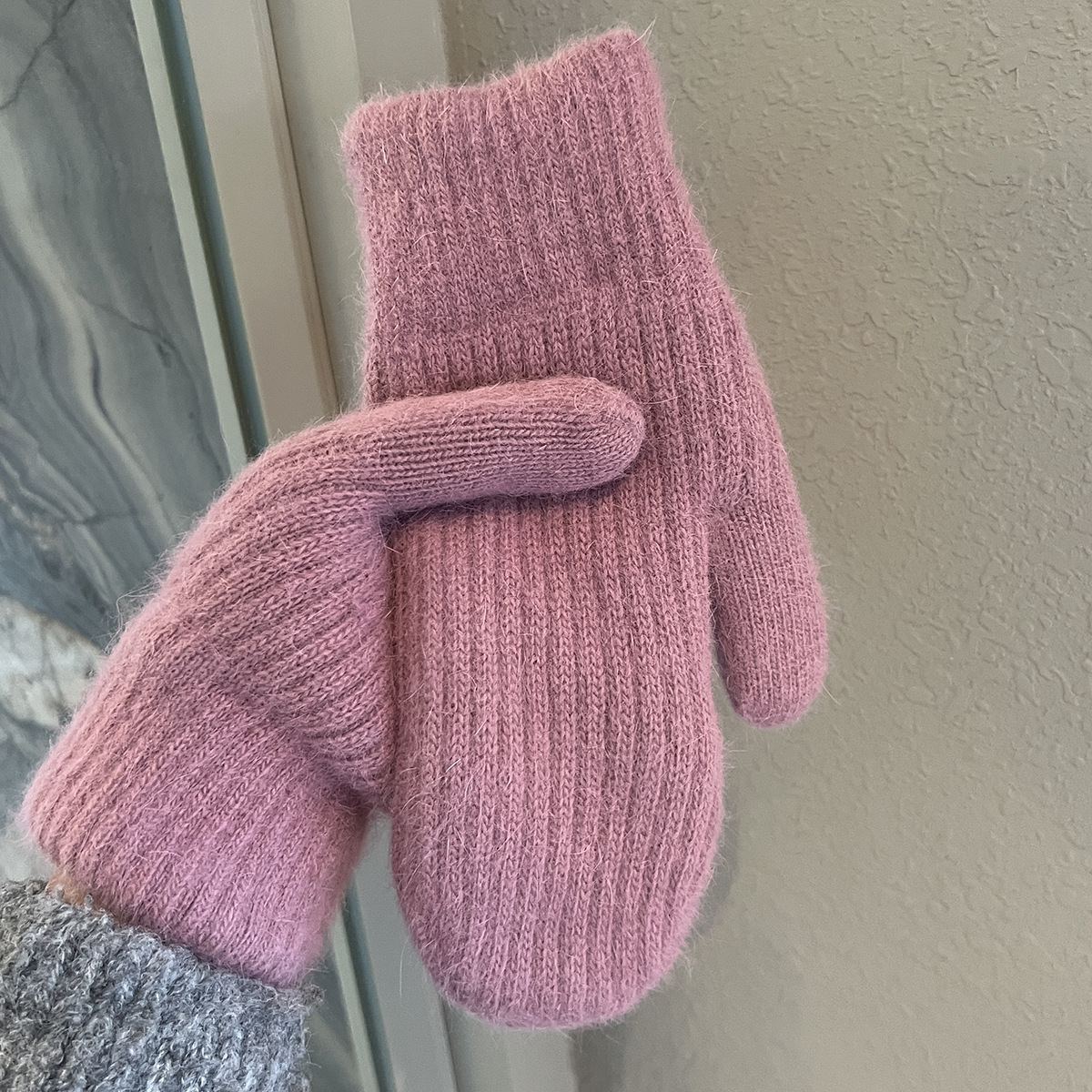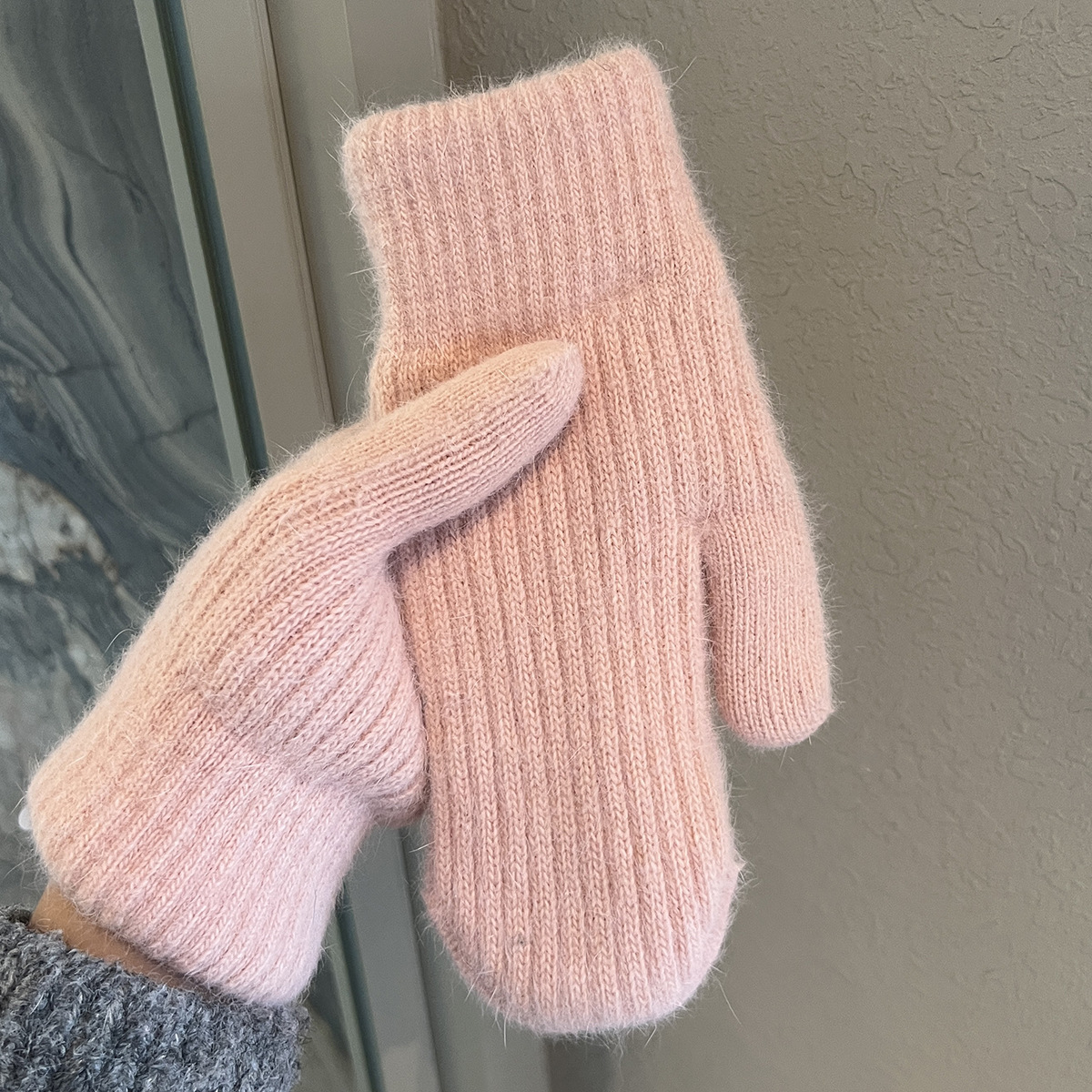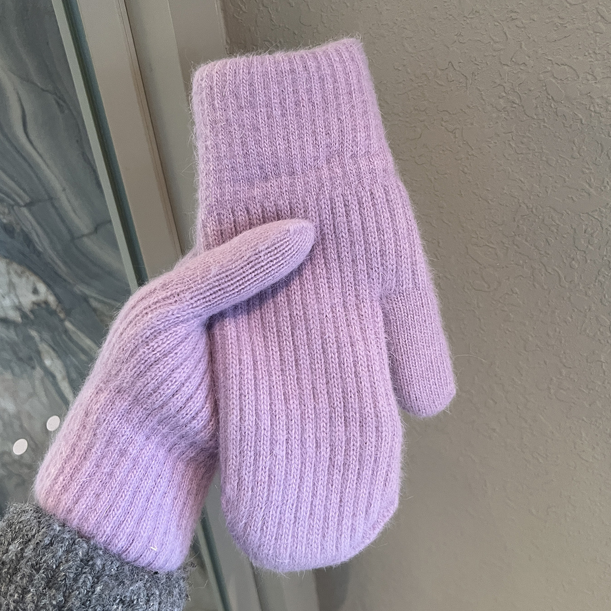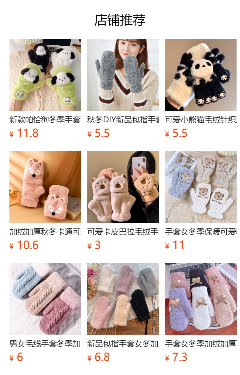 겨울용 여성용 귀여운 단색 플러시 장갑, 두꺼운 보온 학생용 자전거용 방한 장갑, 겨울 유행스토어 가기