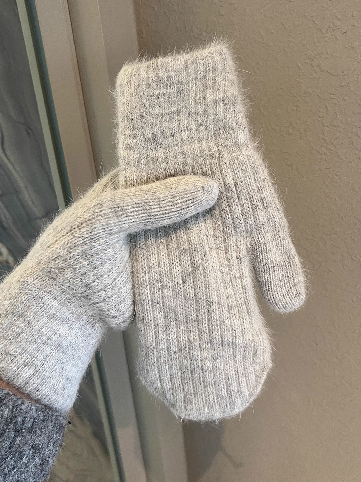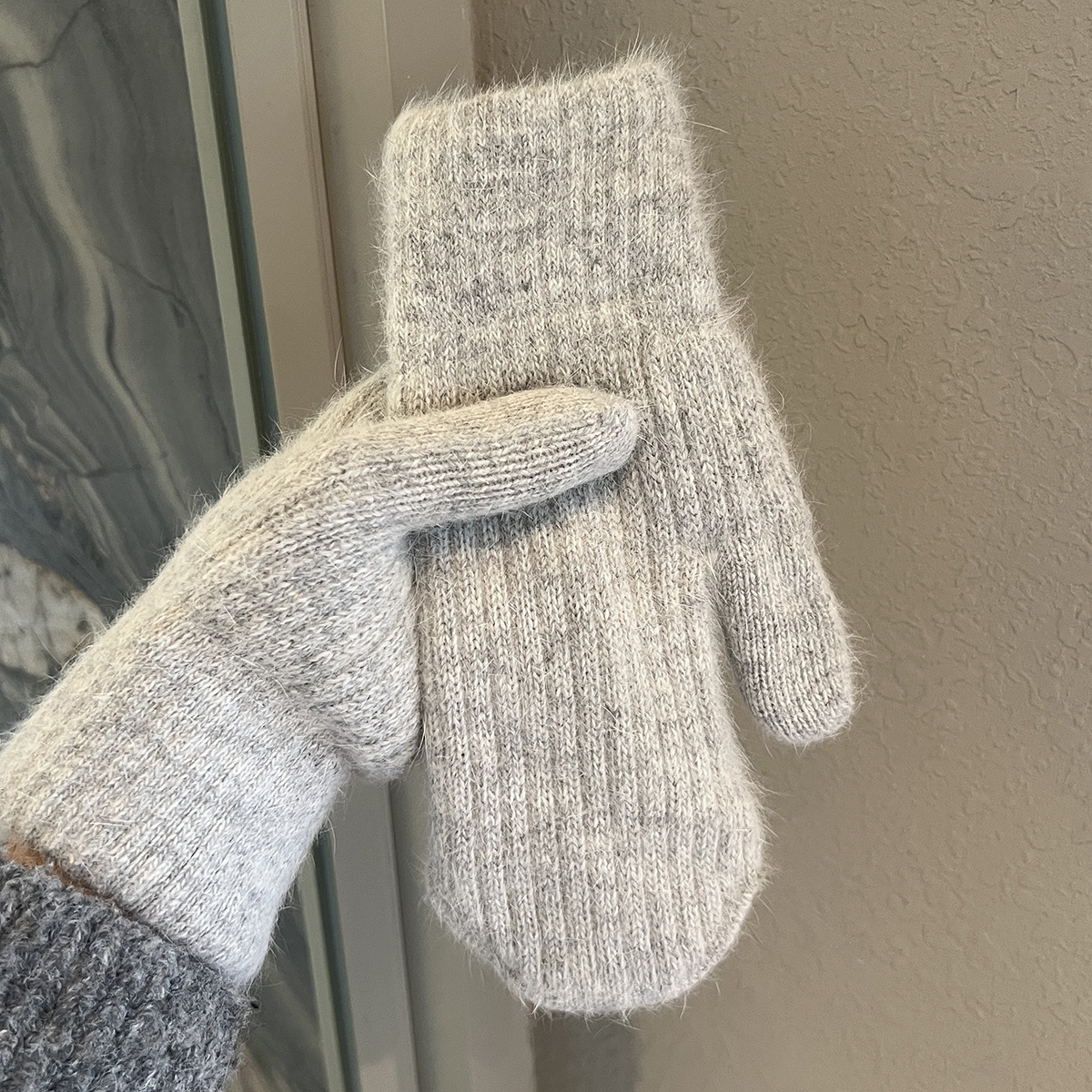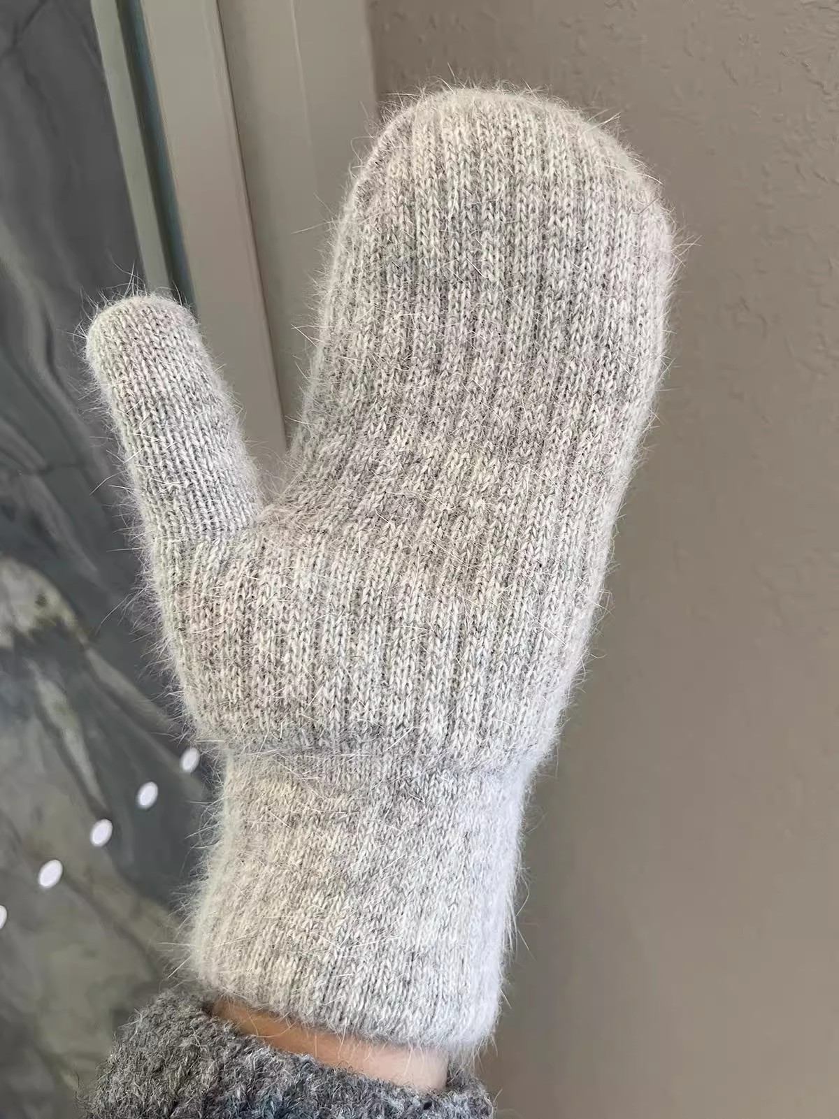 • 라이트 그레이 [세로 줄무늬 니트 핑거백]