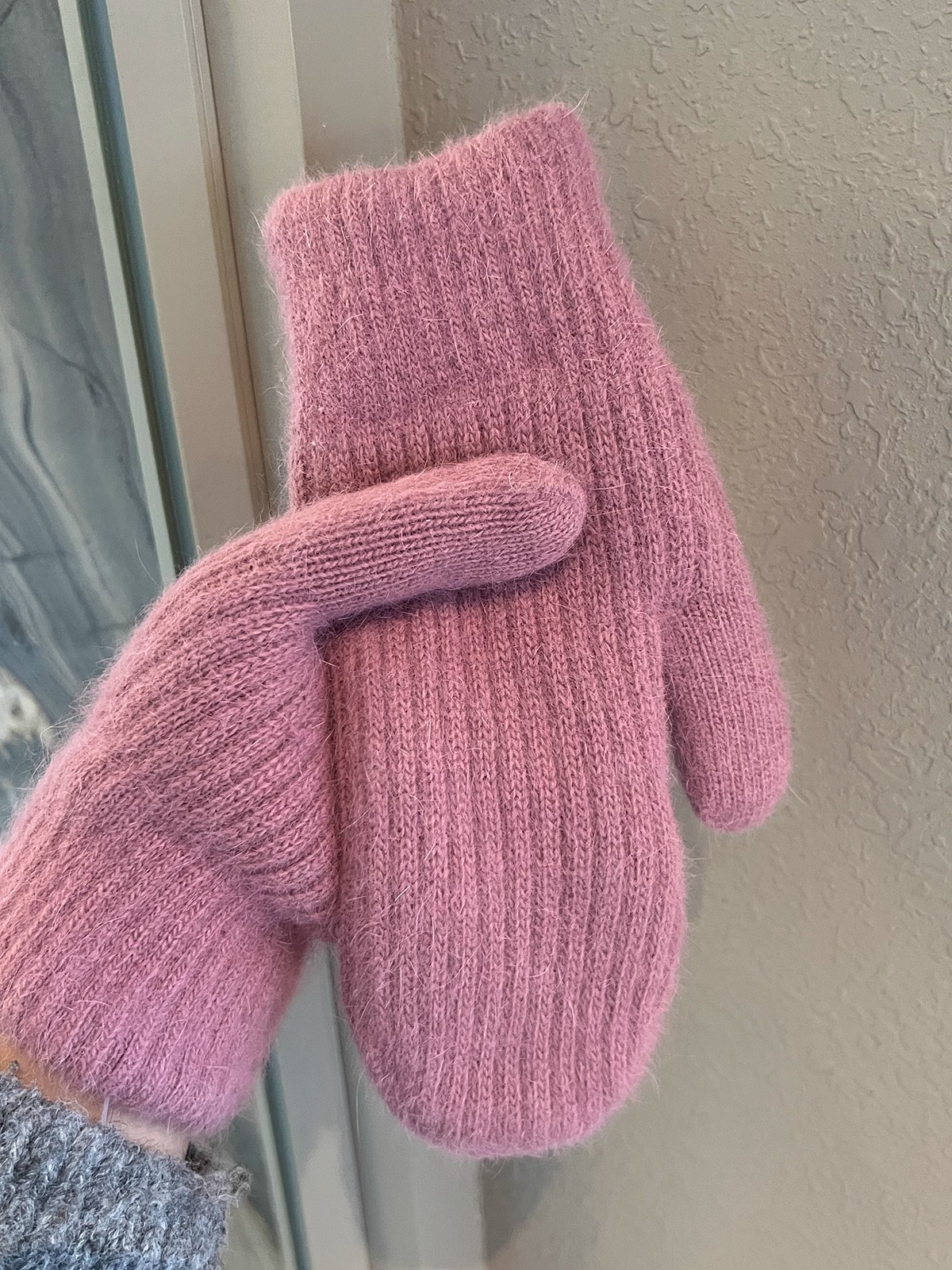 • 로즈 레드 [세로 줄무늬 니트 핑거백]