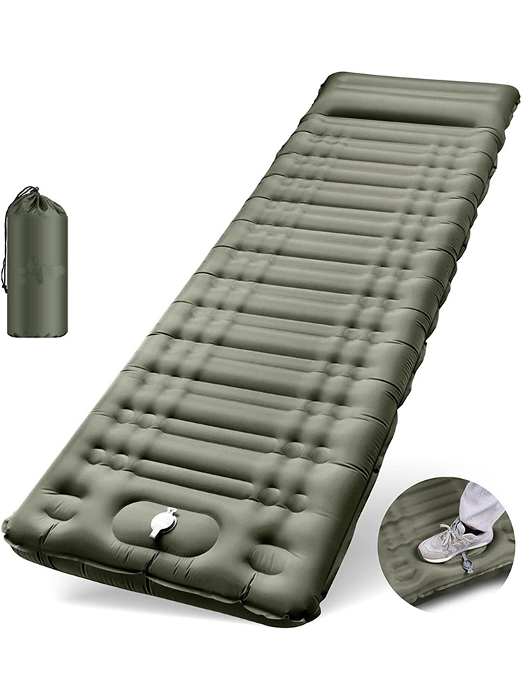 야외용 휴대용 캠핑 에어매트, 방습 매트, 발로 누르는 에어매트리스, 캠핑용 싱글 풀스트랩 두꺼운 에어매트