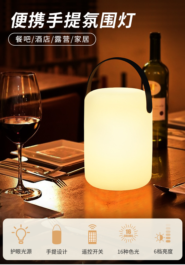 아마존 테이블 램프 분위기 있는 충전식 리모컨 야간등 야외 바 테이블 램프 휴대용 소형 야간등 침대 옆 장식등