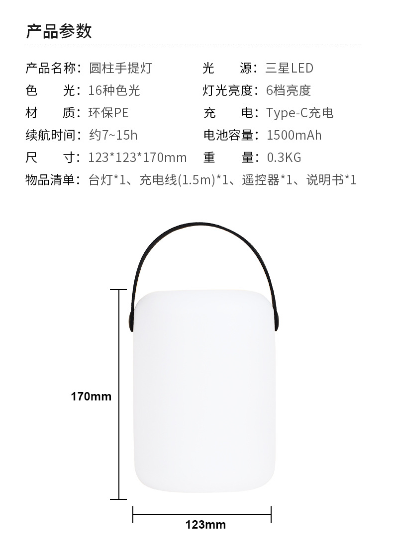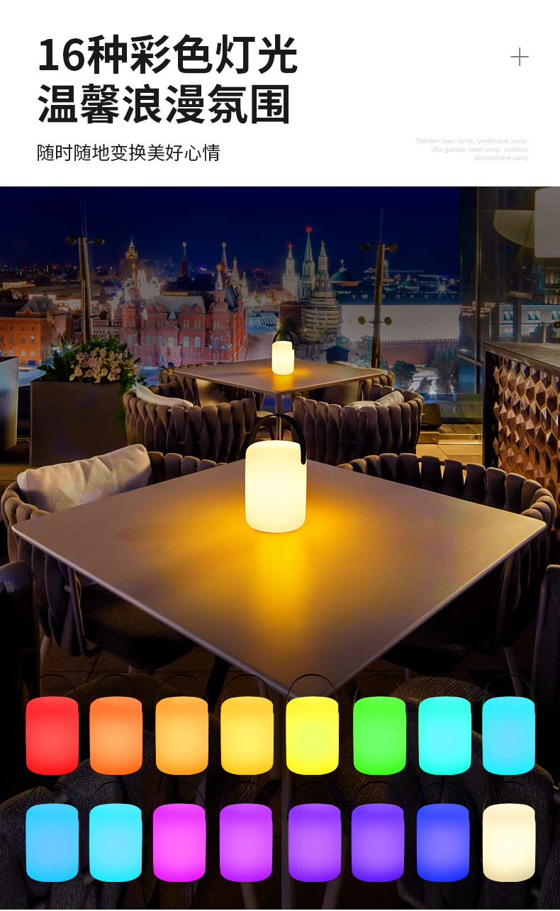 • [원통형 휴대용 램프 업그레이드 버전] 16 색 + 리모콘 + USB 충전