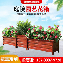 室外道路绿化园艺花箱批发公园碳化木质花箱花坛庭院户外花盆组合