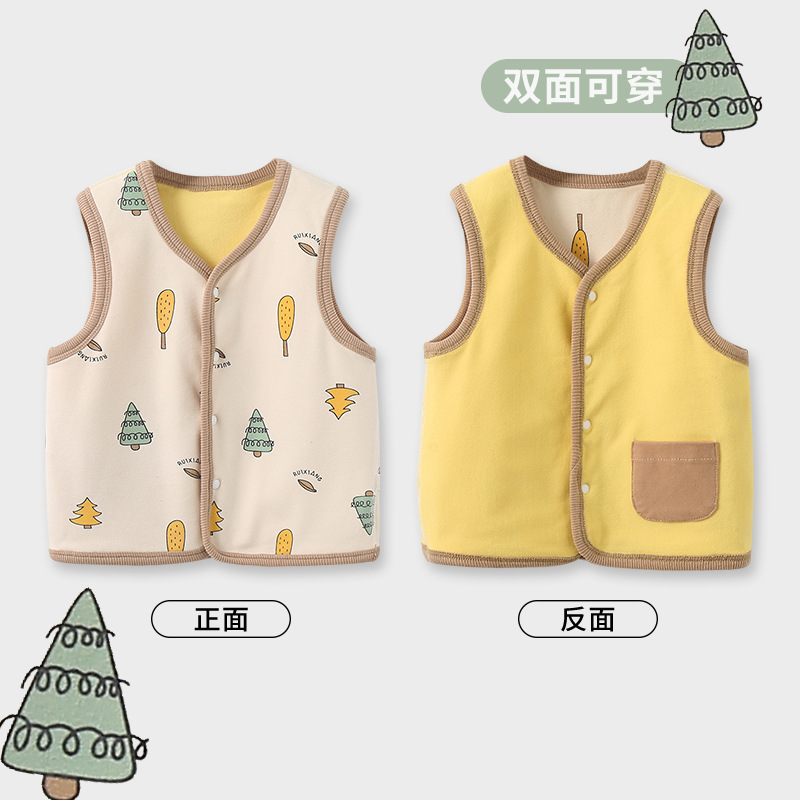 아기의 조끼 봄과 가을 겉옷 아기의 작은 말 클립 조끼 남성과 여성을위한 가을과 겨울 더블 레이어 따뜻한 조끼 어린이스토어 가기