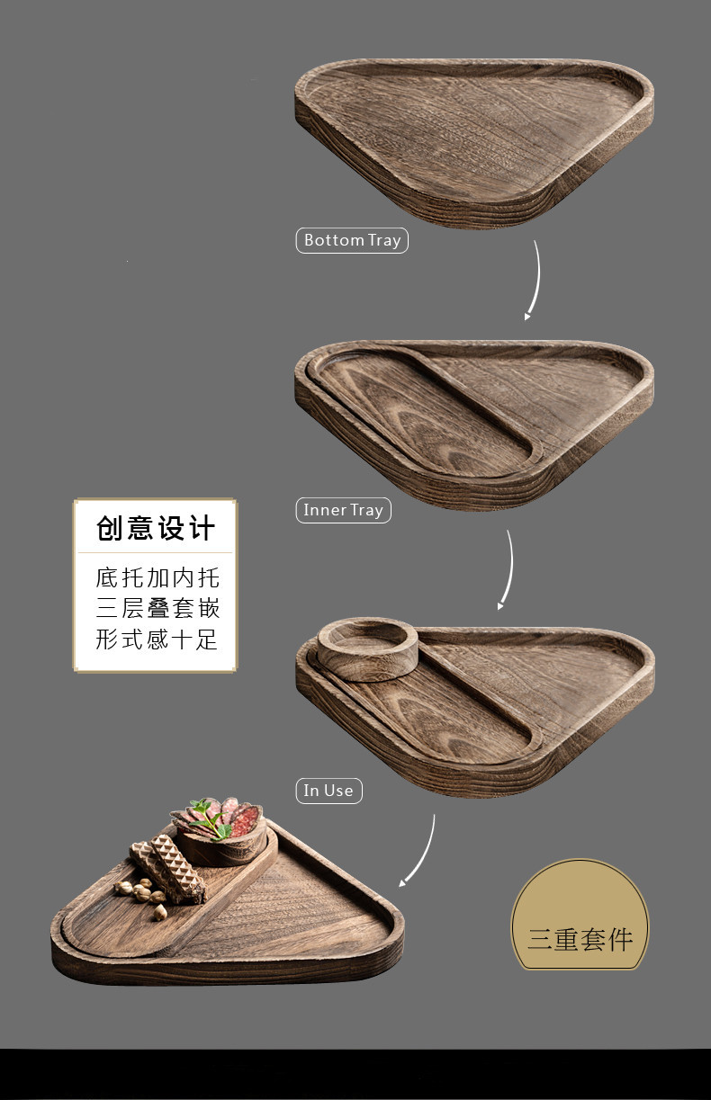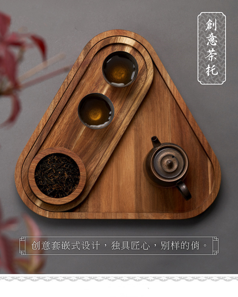 레트로 원목 트레이, 가정용 서재용 차컵 및 차잎용 나무 트레이, 삼각형 중국식 차 트레이, 나무 건과일 트레이스토어 가기