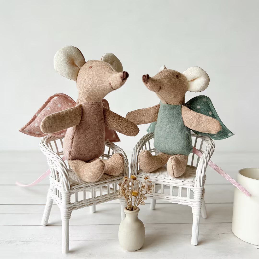 • ins北欧亚麻小老鼠公仔 童话小天使老鼠公仔 生日礼物布艺玩偶