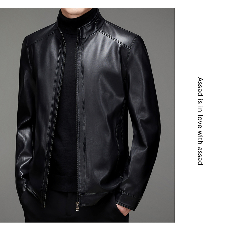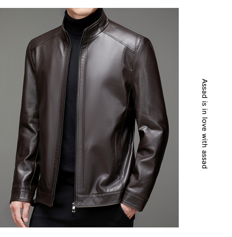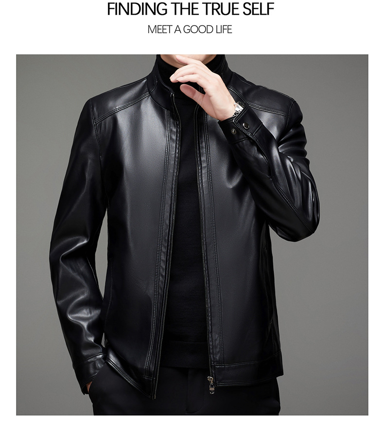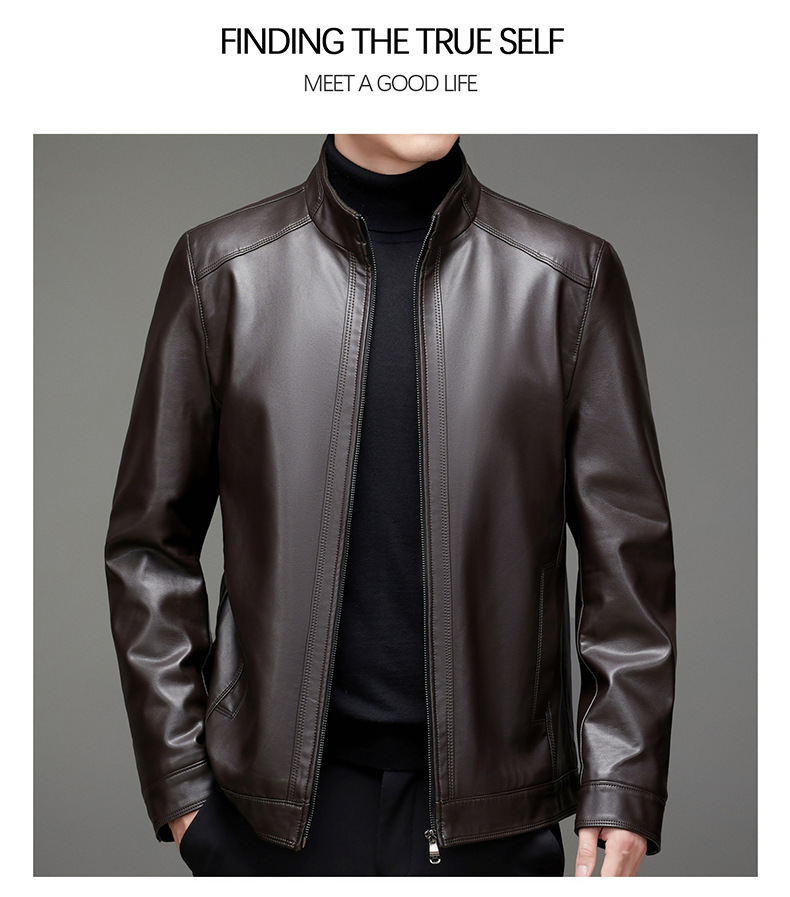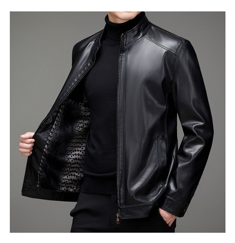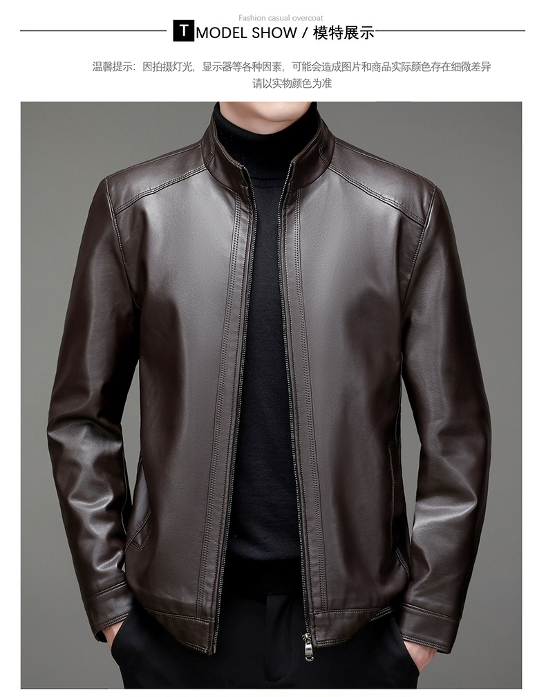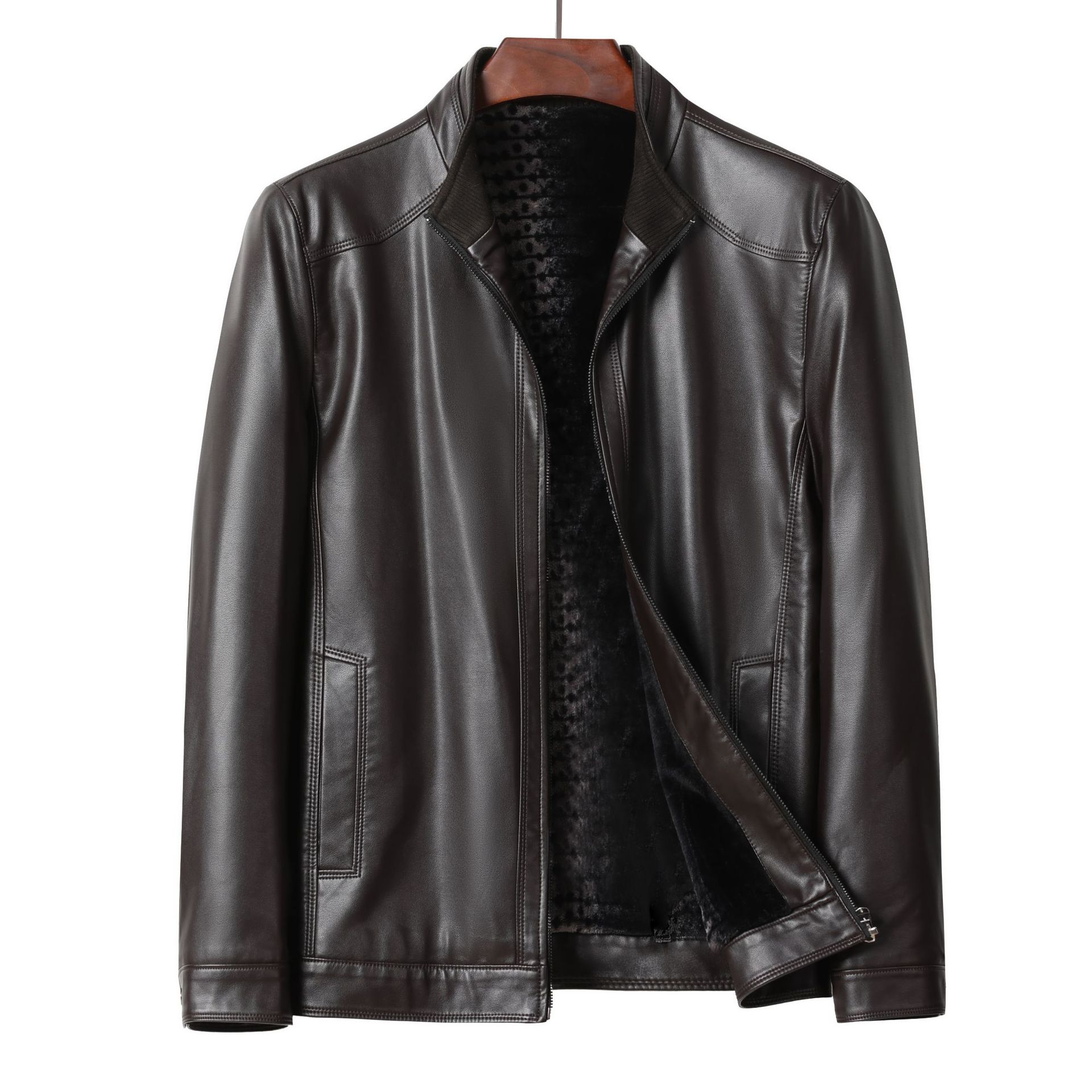 가을과 겨울 새로운 남자의 가죽 비즈니스 캐주얼 칼라 기모 두꺼운 가죽 남성 자켓 코트 크로스 보더 플러스 사이즈스토어 가기