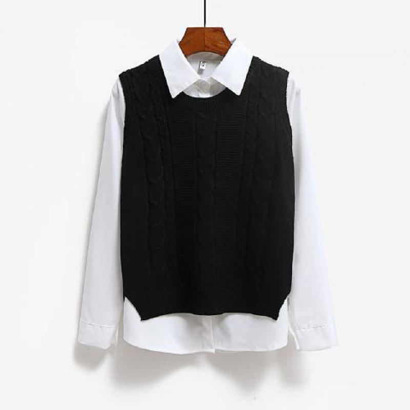 무료 배송 2023 새로운 한국 스타일 아우터 착용 라운드 넥 니트 조끼 짧은 조끼 여성용 봄 아우터 착용 민소매 조끼