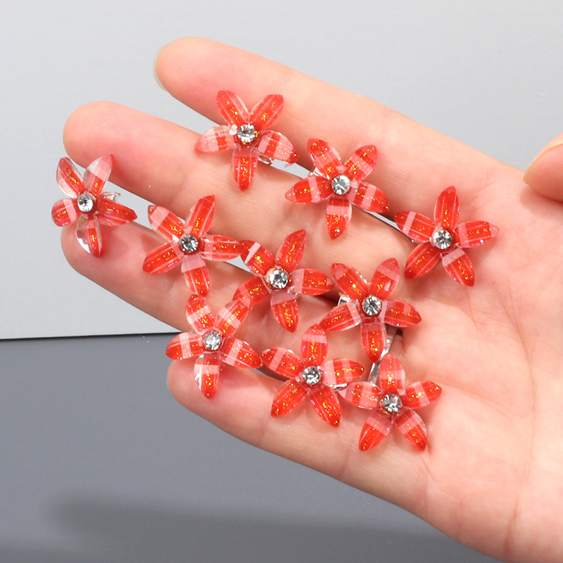달콤한 어린이 꽃 헤어 버클 라인 석 미니 콩 클립 작은 브레이드 디스크 머리 꼰 헤어 클립 작은 Xigua 머리 장식
