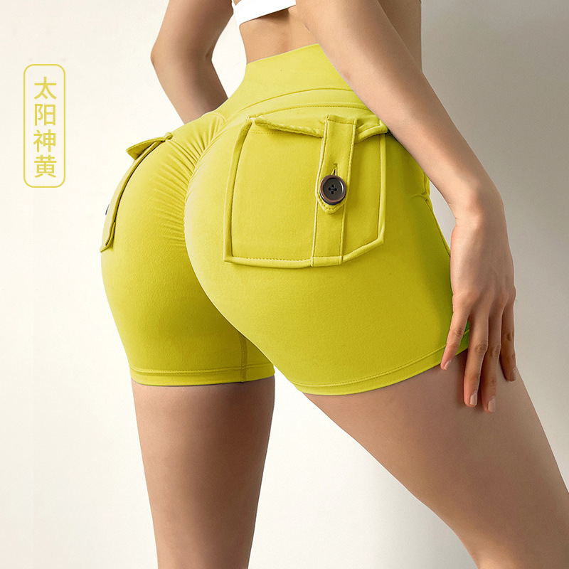 인터넷 인기 알몸 포켓 3 점 바지 섹시한 요가 바지 여성용 하이 웨이스트 엉덩이 복숭아 엉덩이 스포츠 반바지 피트니스 바지스토어 가기