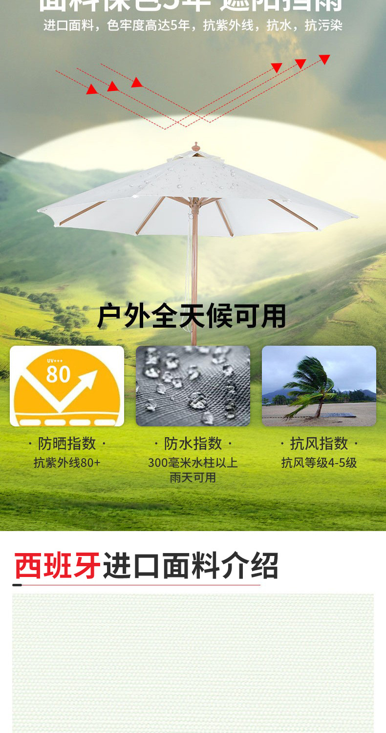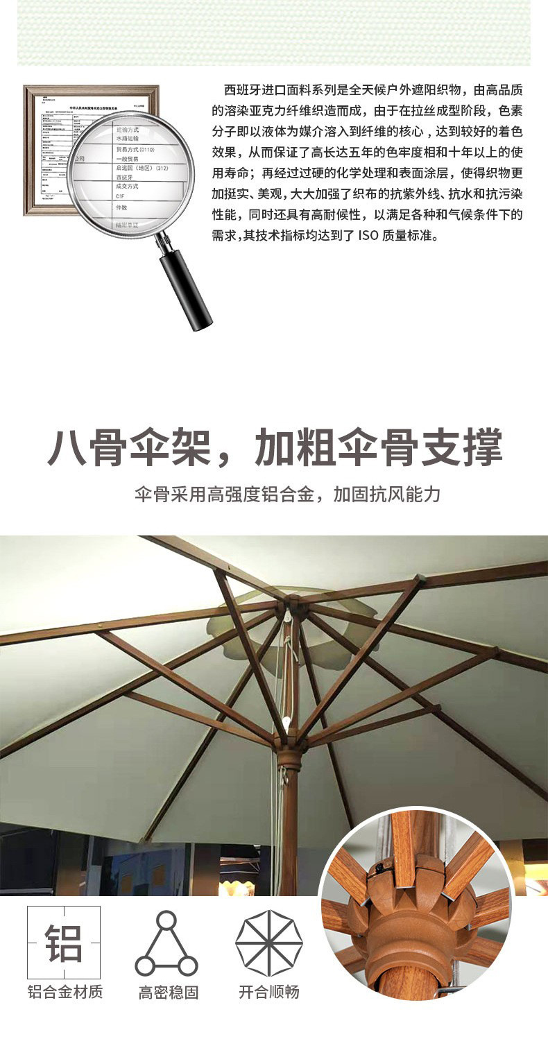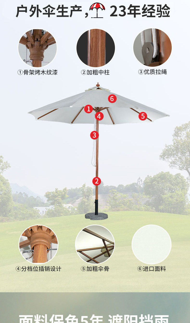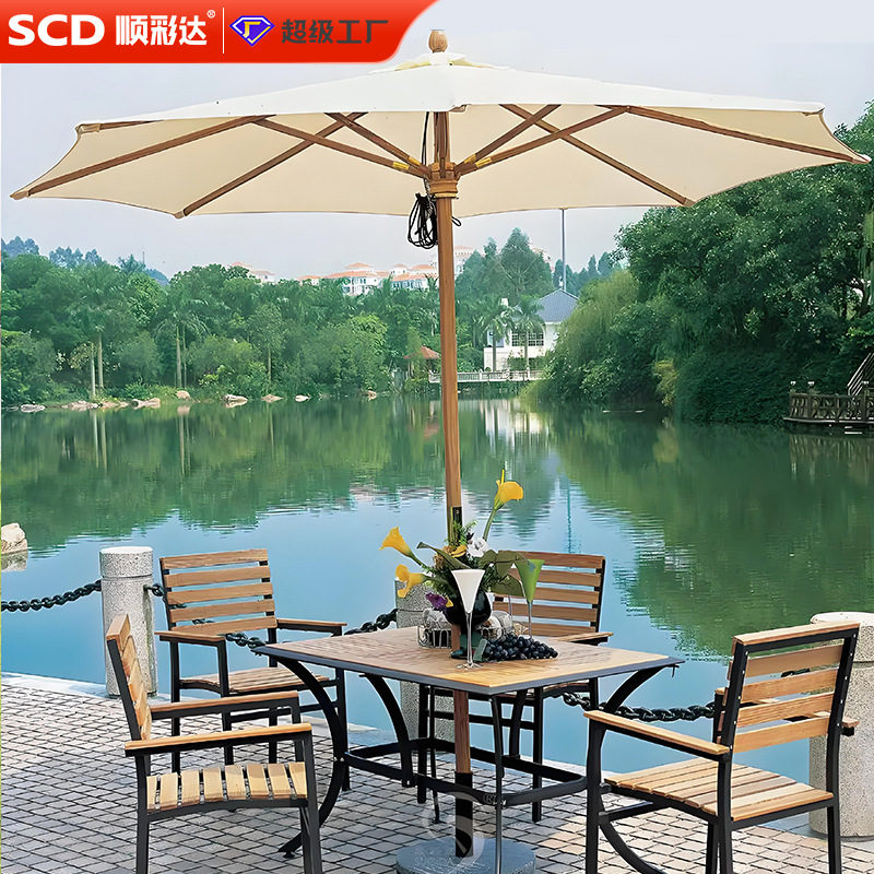 Shuncaida 수출 Z008 우드 그레인 중간 기둥 우산 야외 안뜰 정원 테라스 망원경 우산 도매 야외 파라솔
