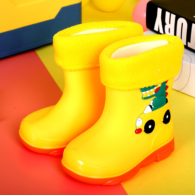 어린이 장화, 미끄럼 방지 부드러운 바닥, 귀여운 만화 공룡 플러스 벨벳, 따뜻하고 탈착 가능, 소년 소녀, 중소형 어린이 장화스토어 가기