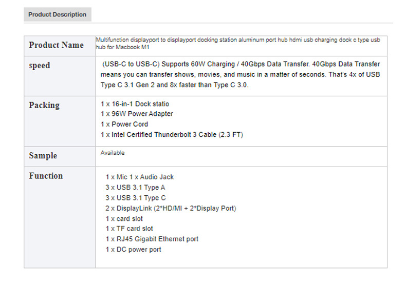 디스플레이 링크 다기능 도킹 스테이션 유형-c USB 3.2 GEN2 허브 지원 M1 프로세서