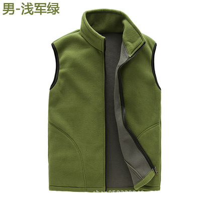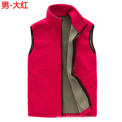 가을과 겨울 커플 폴라 양털 조끼 기모 두꺼운 따뜻한 남성과 여성의 조끼 카디건 야외 스포츠 단색 양털 옷
