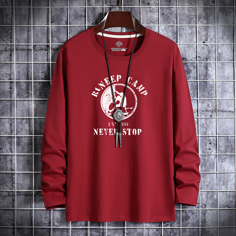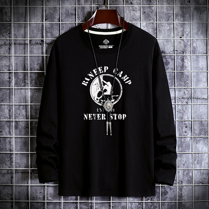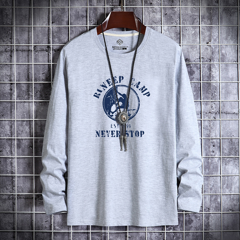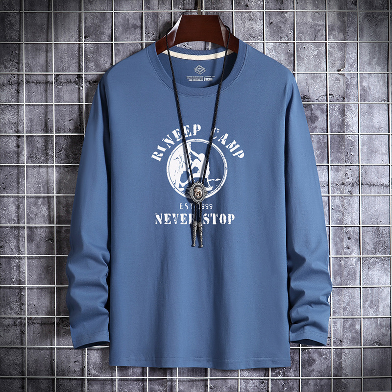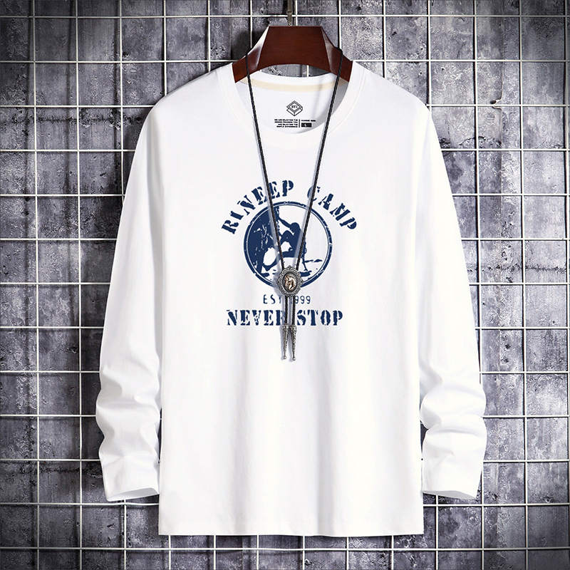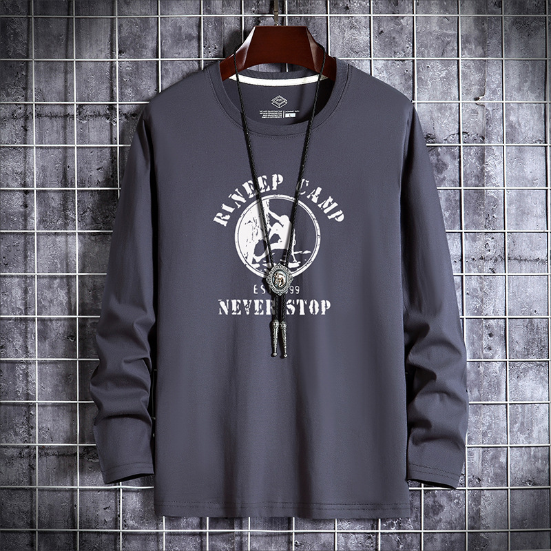 새로운 남성용 긴팔 티셔츠 프린트 라운드 넥 슬림핏 한국 베이스 셔츠 젊은 중년 얇은 가을 유행 가을 티셔츠스토어 가기