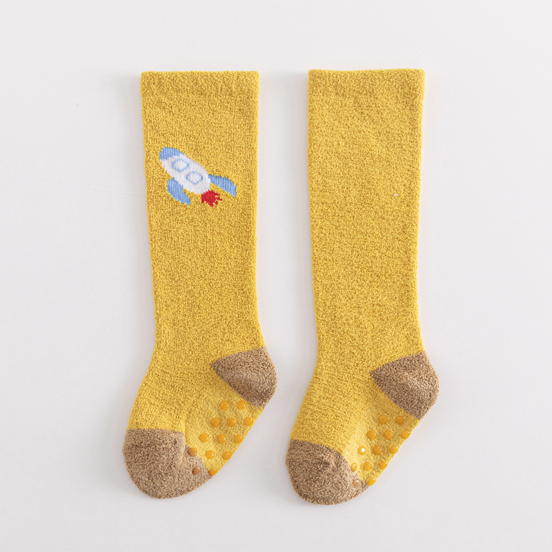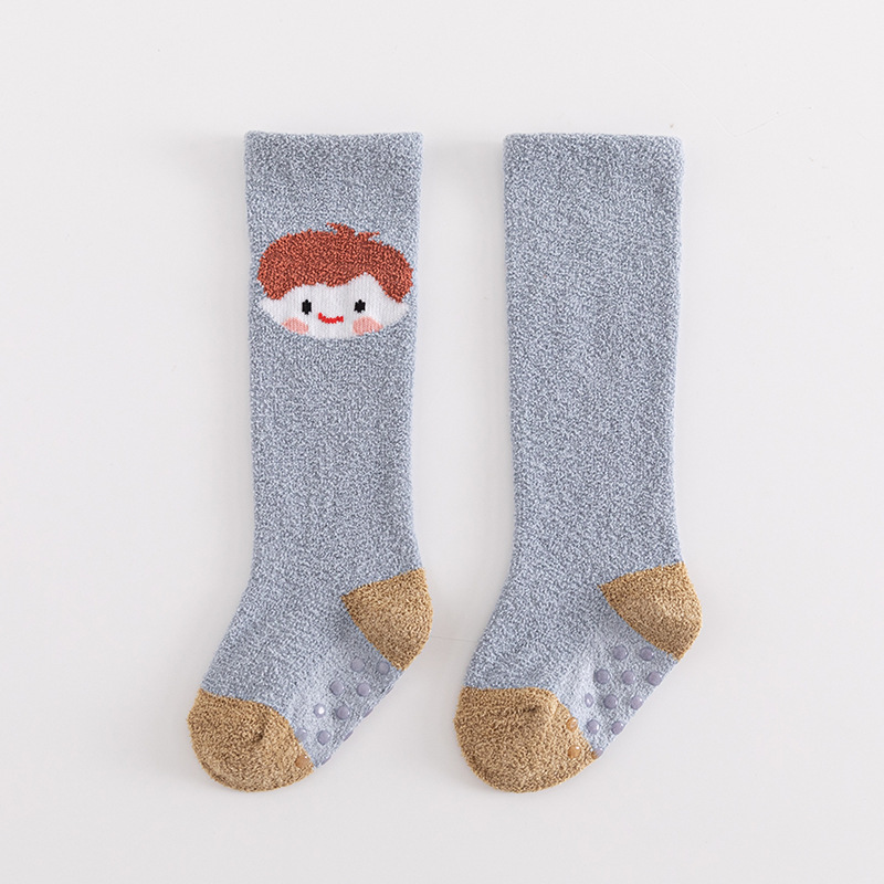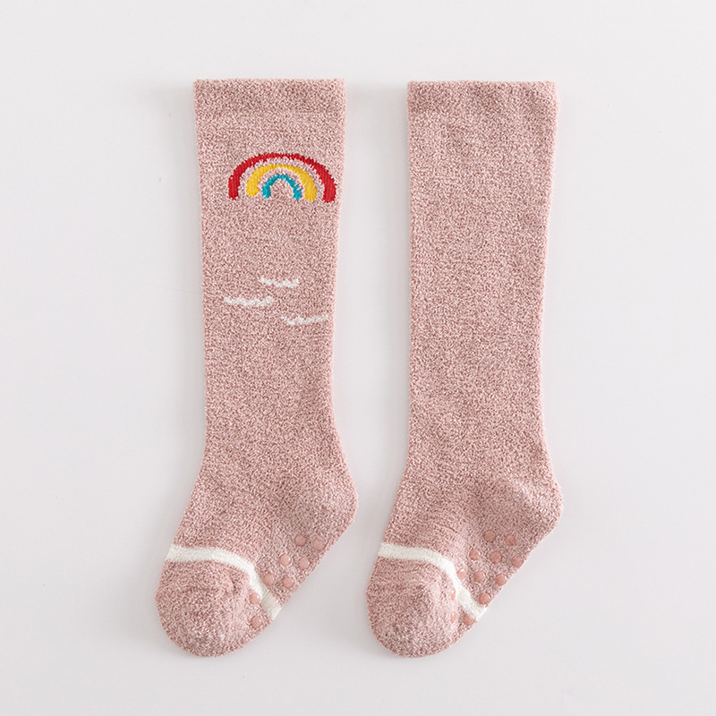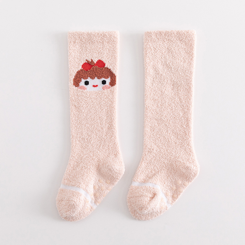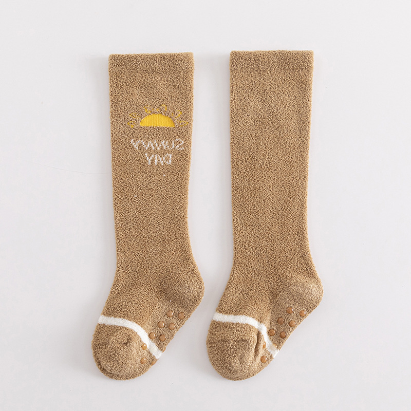아기 양말 가을과 겨울 두꺼운 산호 양털 신생아 스타킹 유아 미끄럼 방지 무릎 어린이 바닥 양말
