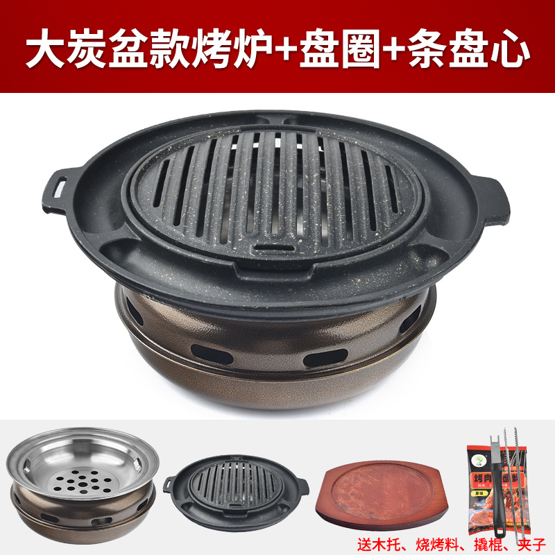 한국식 탄소 그릴 가정용 일본식 화로 바베큐 원형 바베큐 스토브 숯 그릴 냄비 숯 그릴 바베큐 접시스토어 가기