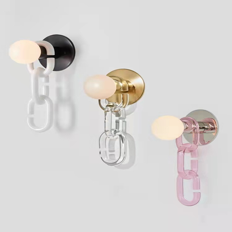 북유럽 스타일의 심플한 유리 구체 침실 침대 옆 벽등, 창의적인 디자이너 거실 서재 잠금 체인 LED 조명