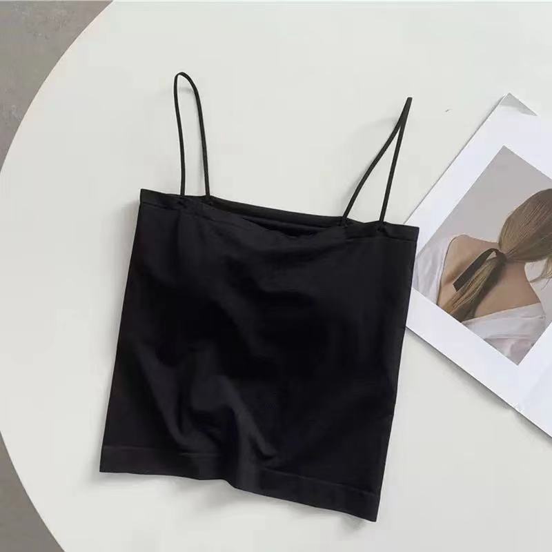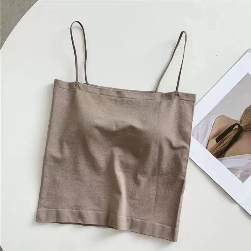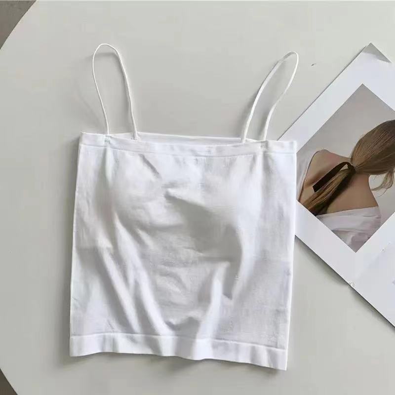새로운 여름 스파이스 걸스 솔리드 컬러 캐미솔 조끼 여성용 통합 가슴 패드 얇은 어깨 스트랩 슬림베이스 튜브 탑 겉옷