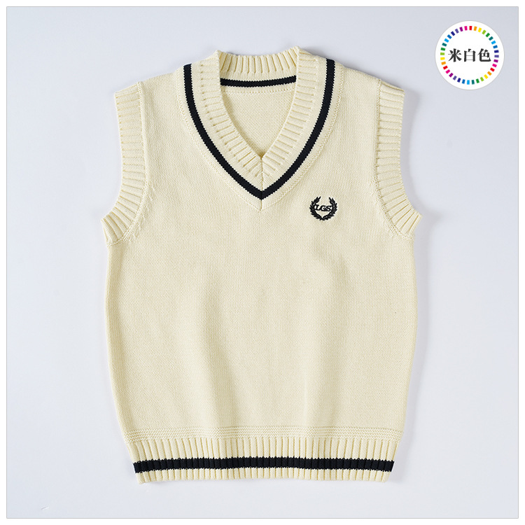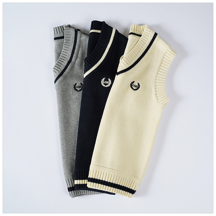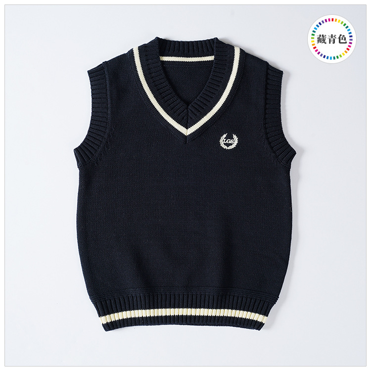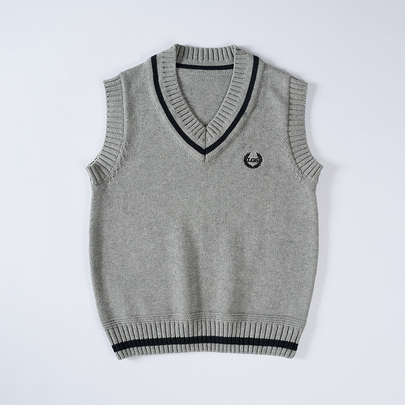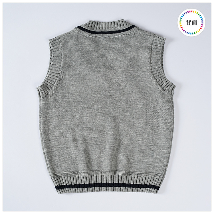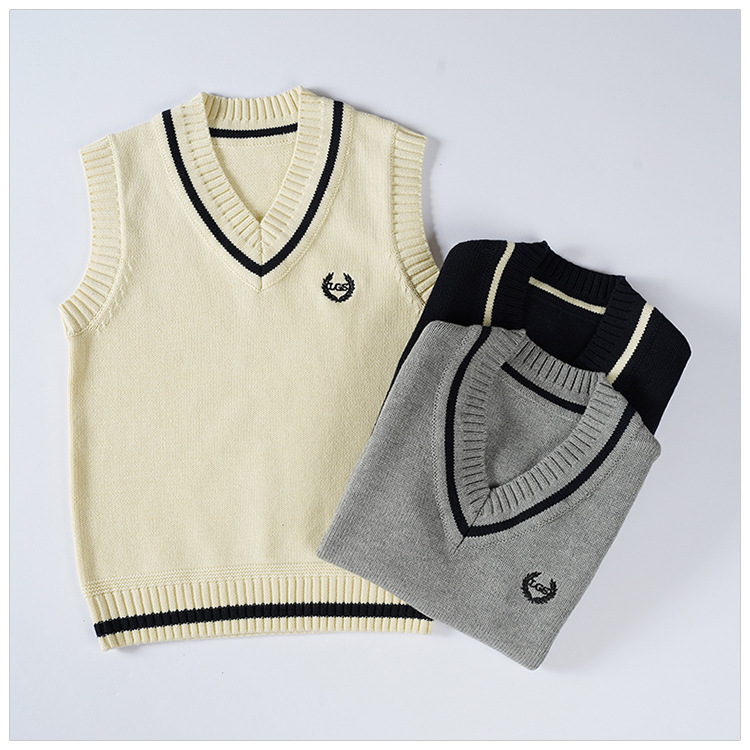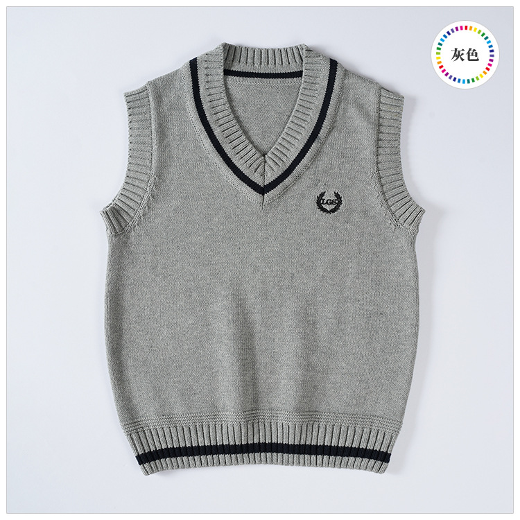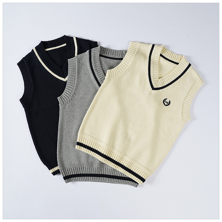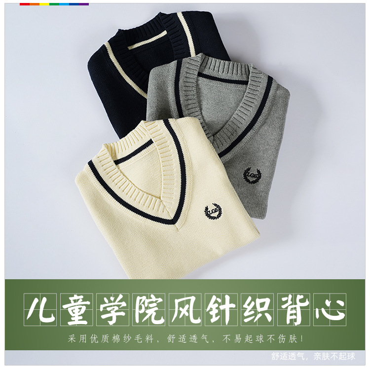 2025년 봄 가을 아동 니트웨어 브이넥 자수 학교 스타일 학생용 면사 조끼 스웨터 남녀 아동복스토어 가기