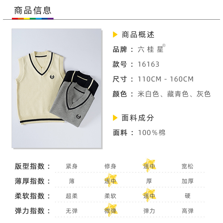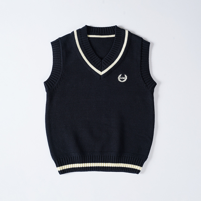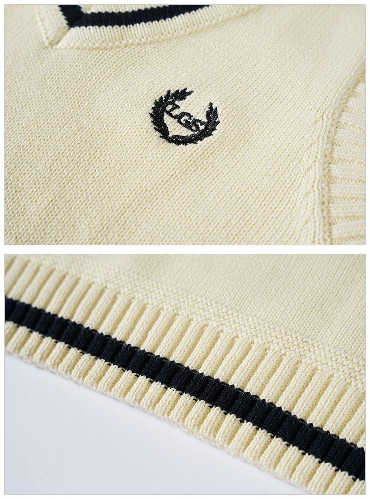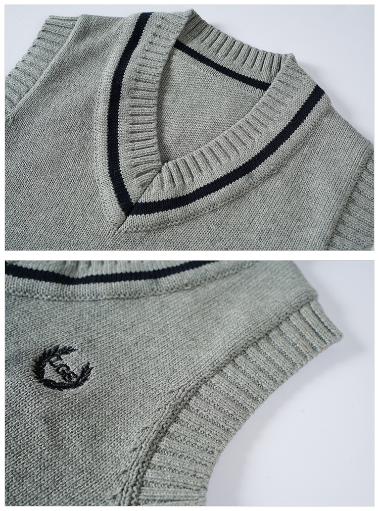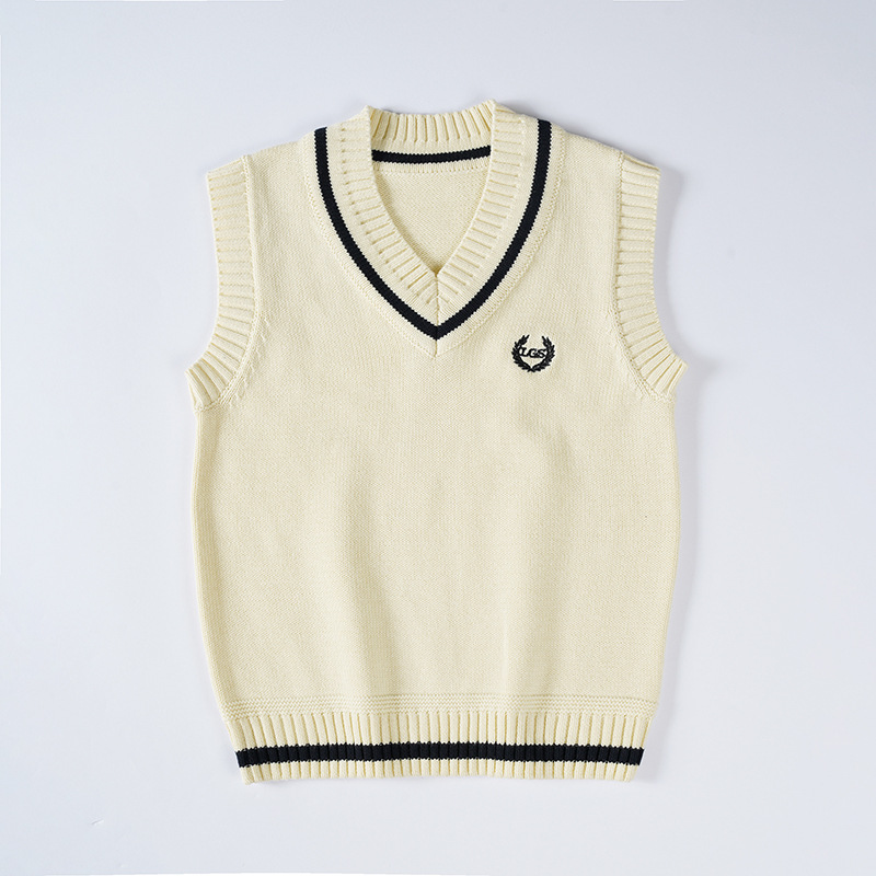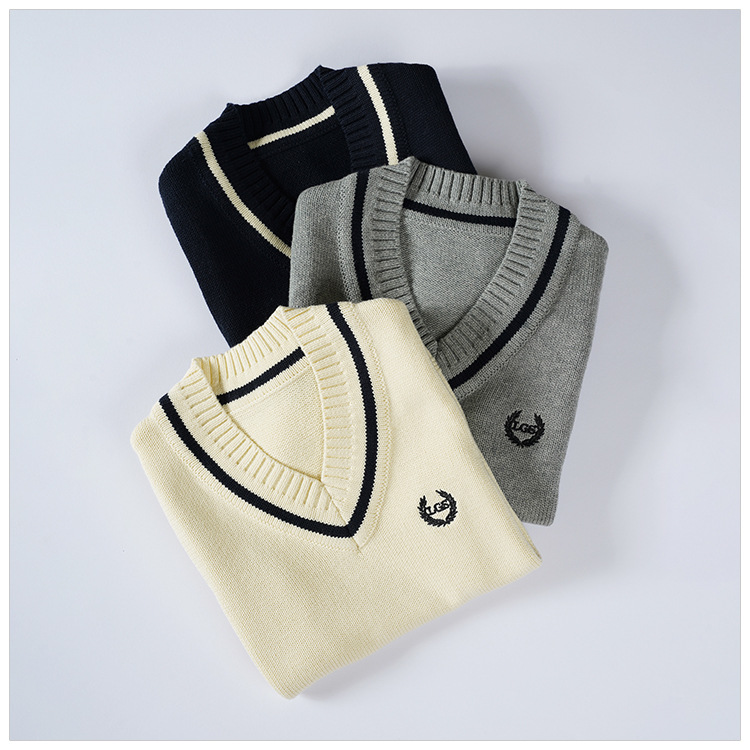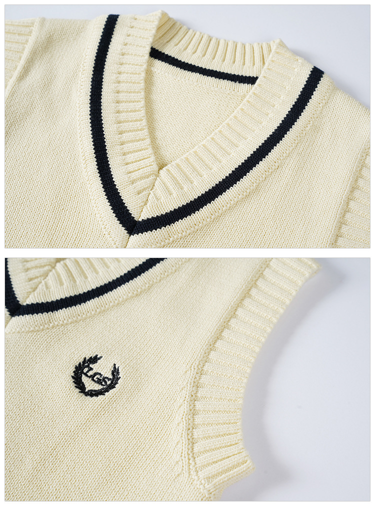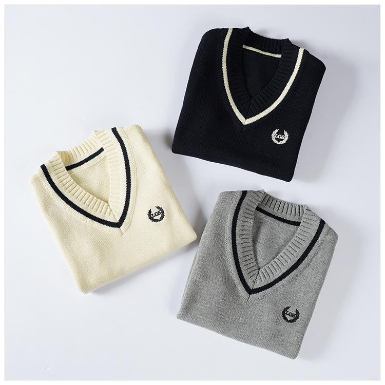 2025년 봄 가을 아동 니트웨어 브이넥 자수 학교 스타일 학생용 면사 조끼 스웨터 남녀 아동복스토어 가기