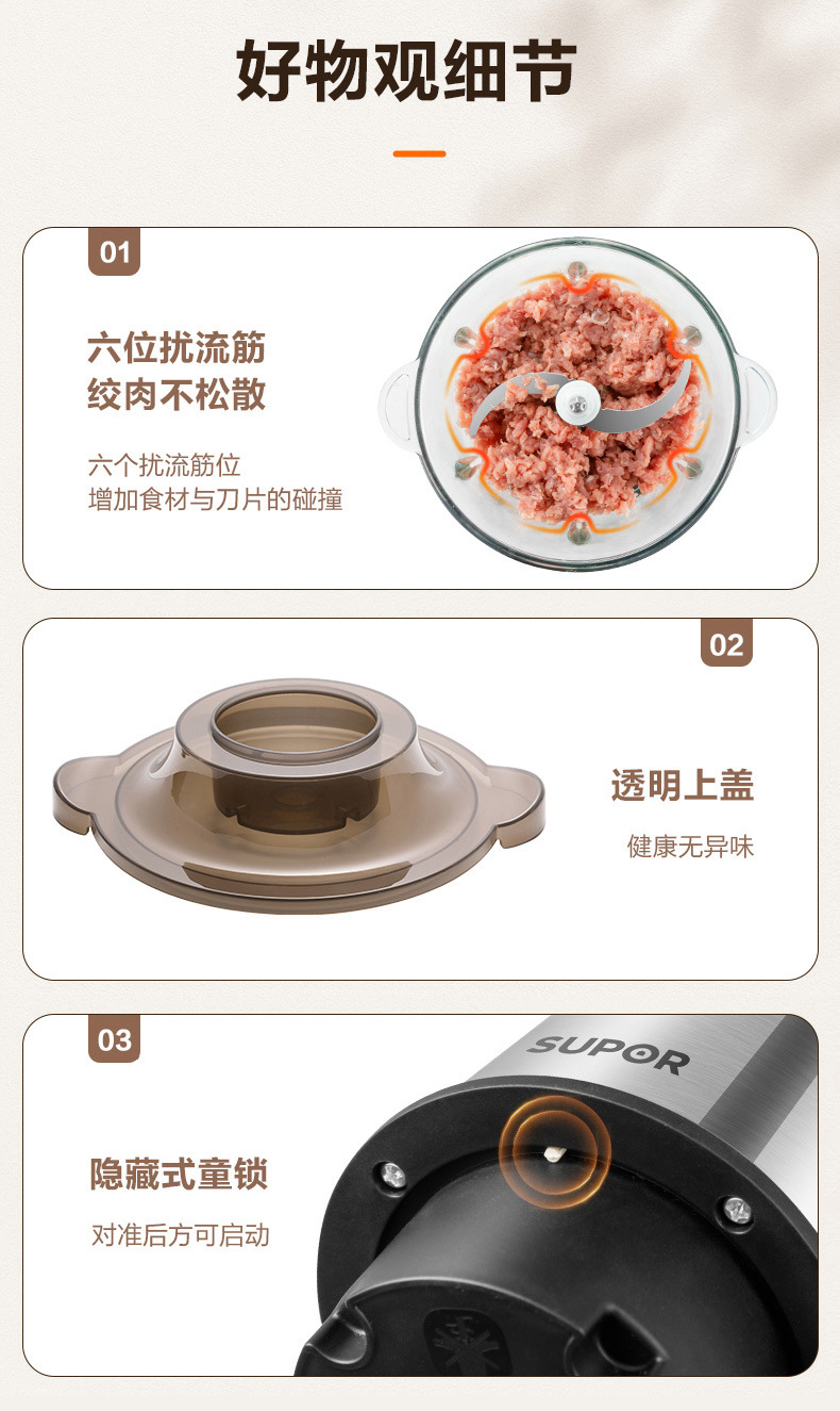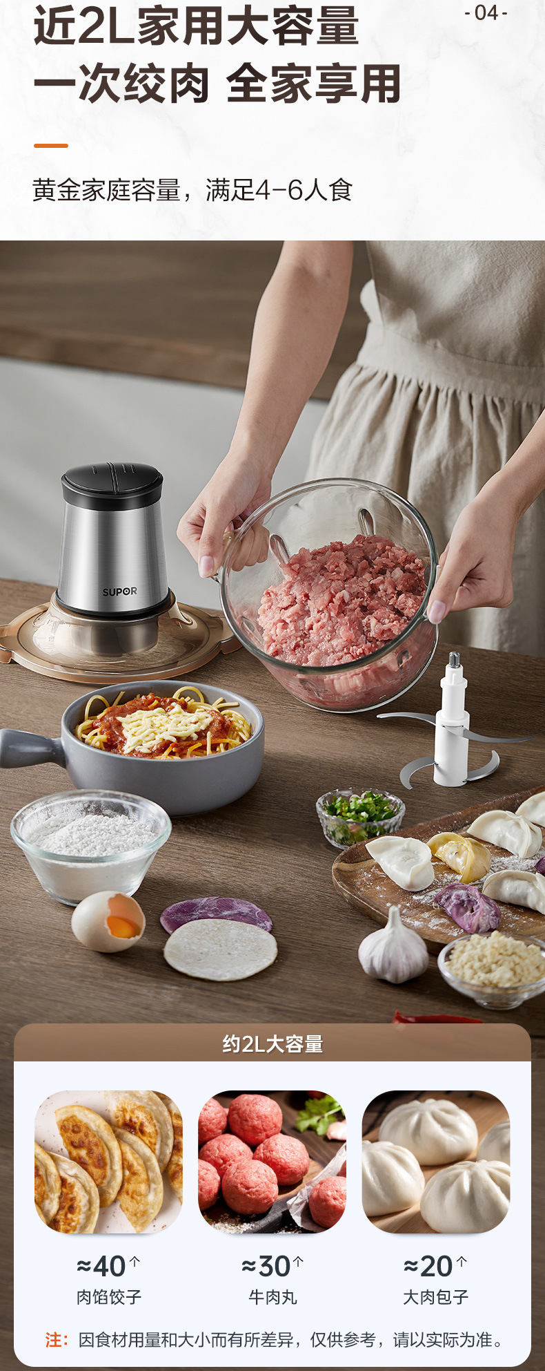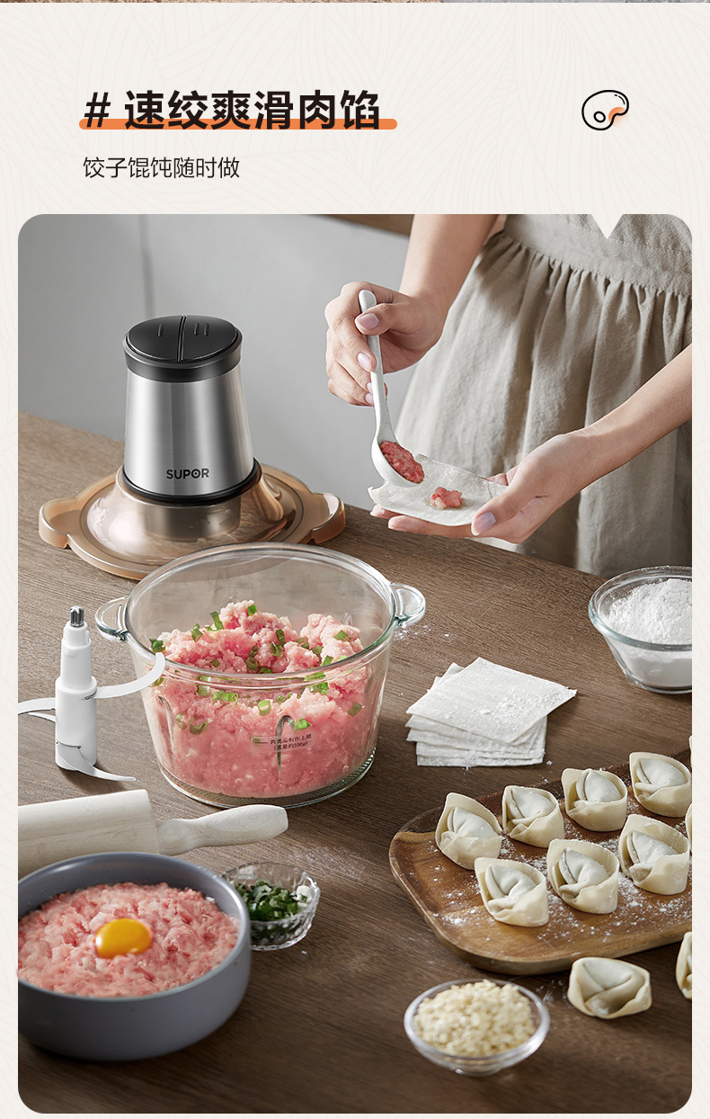 Supor 고기 분쇄기 가정용 전기 소형 다기능 요리 혼합 지상 접시 만두 다진 고기 JR05-300스토어 가기